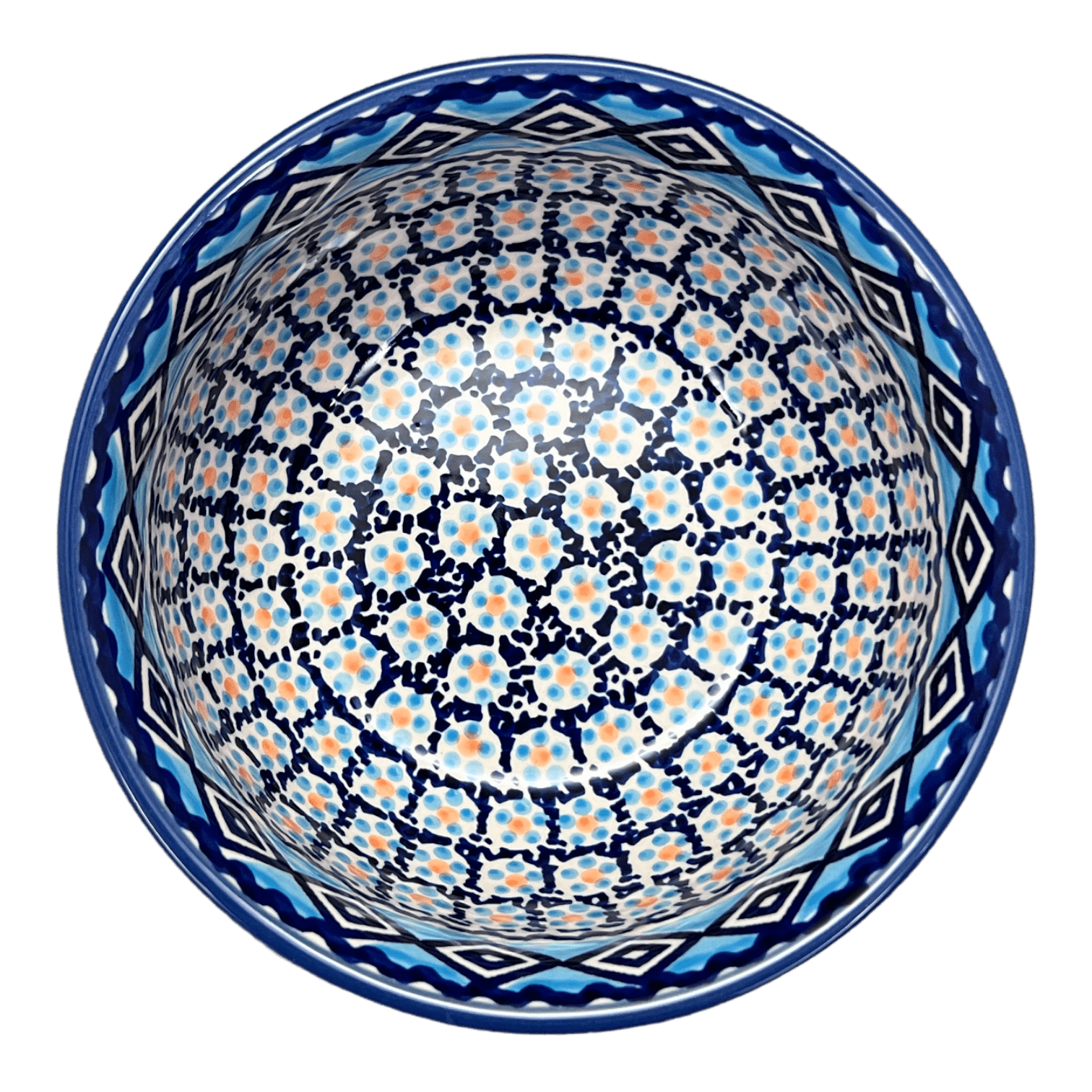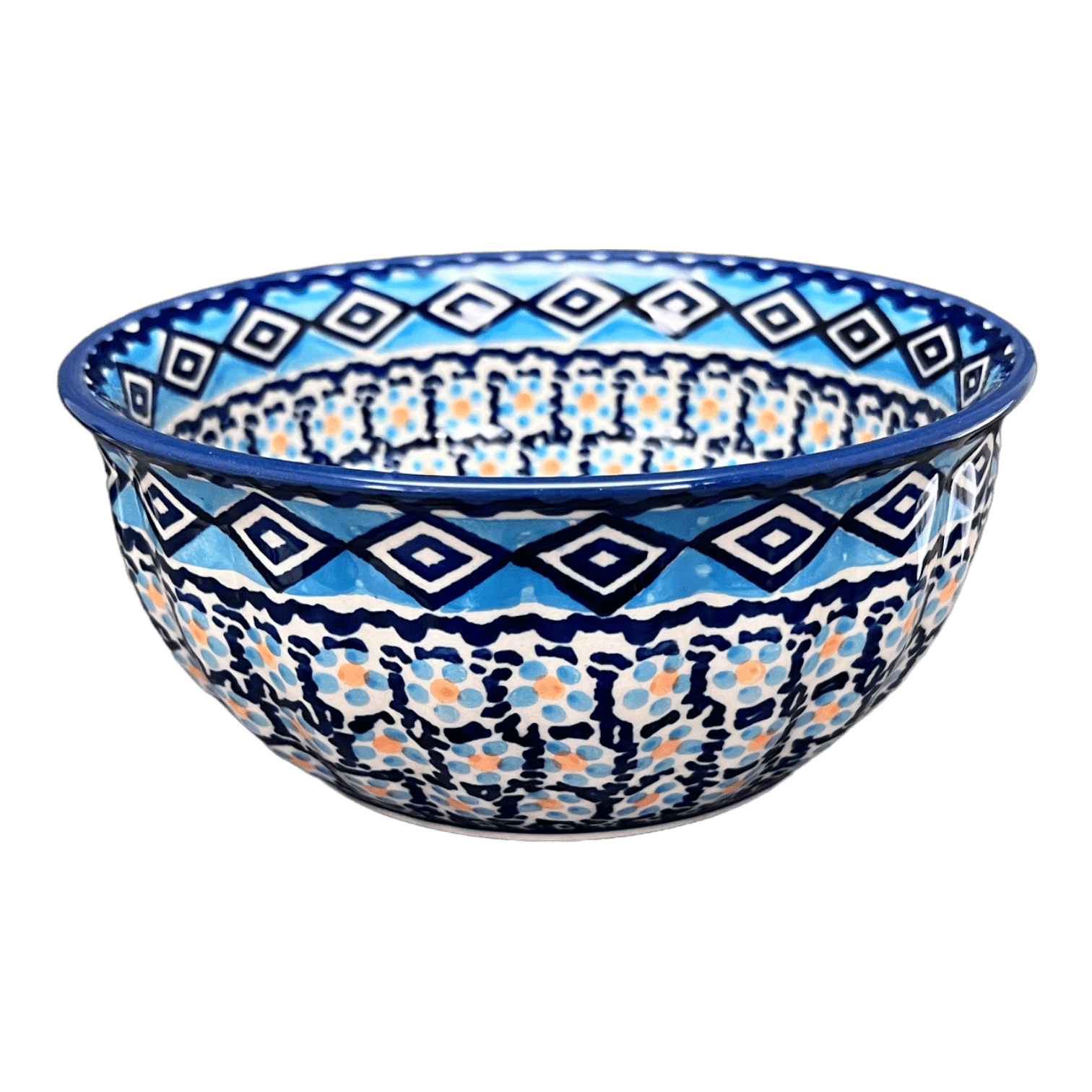 Introducing the Polish Pottery 6.5" Bowl by Manufaktura in the mesmerizing "Blue Diamond" pattern (DHR). These bowls are not your ordinary kitchenware - they are perfect for soups, salads, pastas, or even as small mixing bowls! With its captivating design elements incorporating geometric shapes in a predominantly light blue color, accented with dark blue and yellow, the "Blue Diamond" pattern is sure to add a touch of elegance to your table.