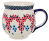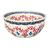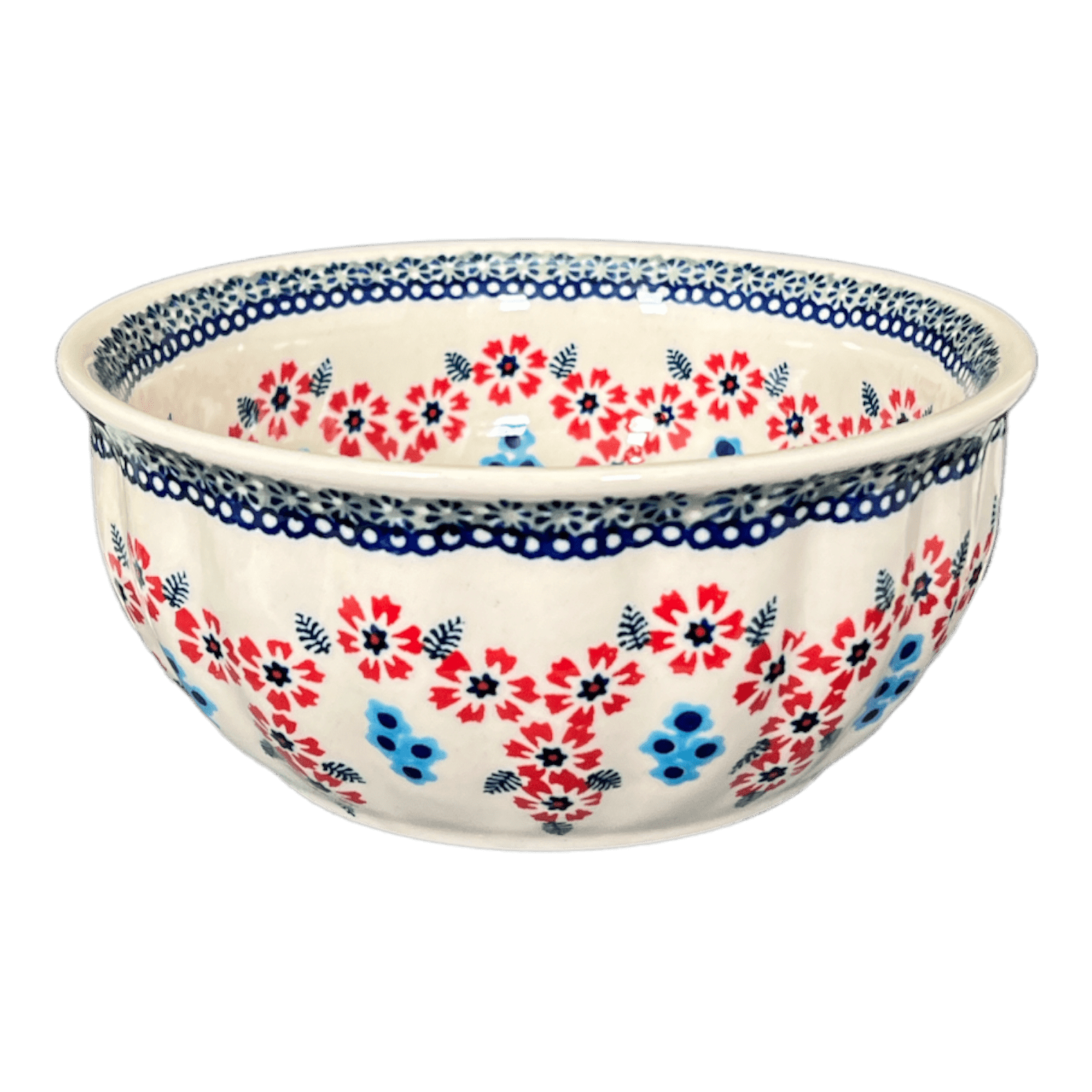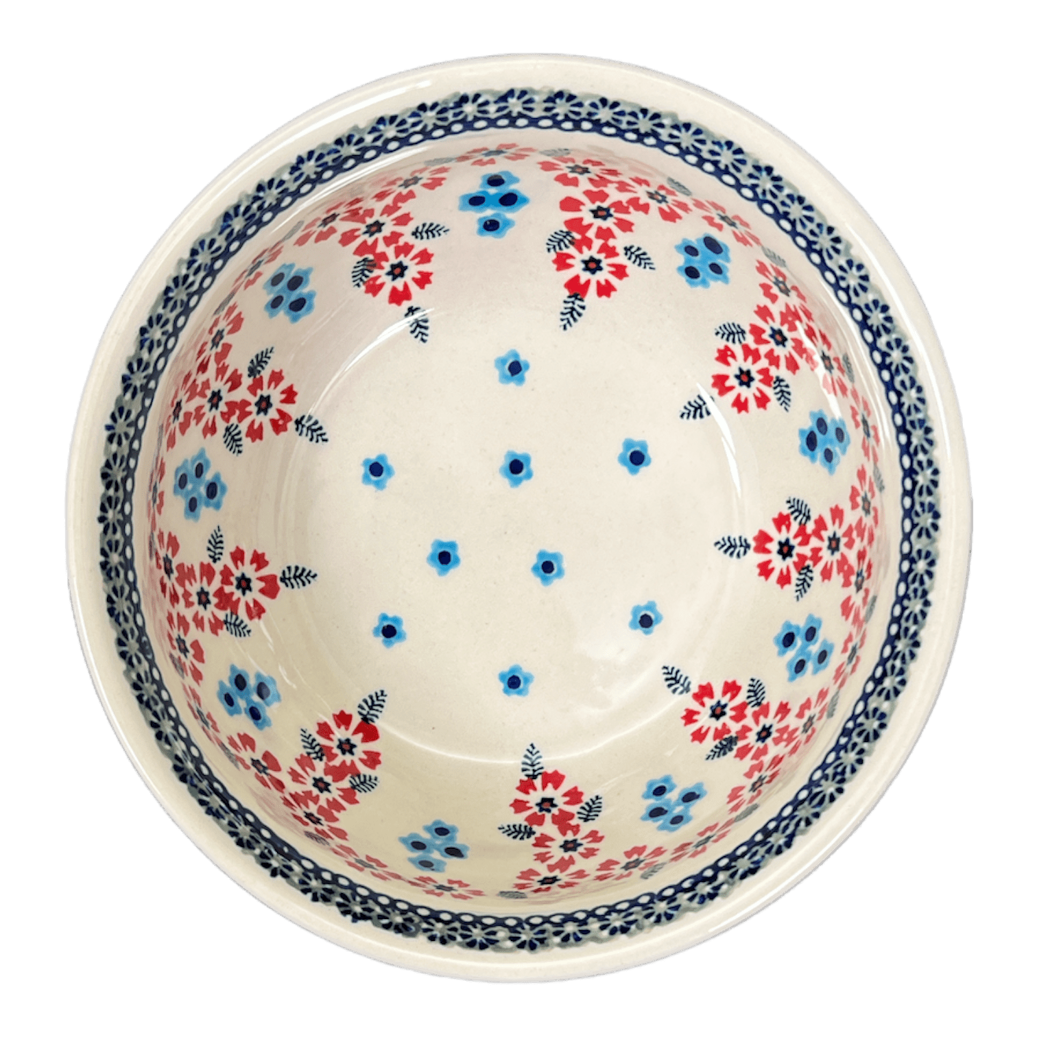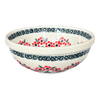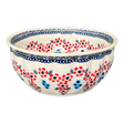 The "Floral Symmetry" pattern on this bowl is a sight to behold. It features a mesmerizing design with flowers in a predominantly Red color, accented by hints of Light Blue and Green, and White. It's like having a piece of art right in your hands! The skilled artisans in Boleslawiec, Poland have meticulously hand-painted each bowl, ensuring that no two pieces are exactly alike.