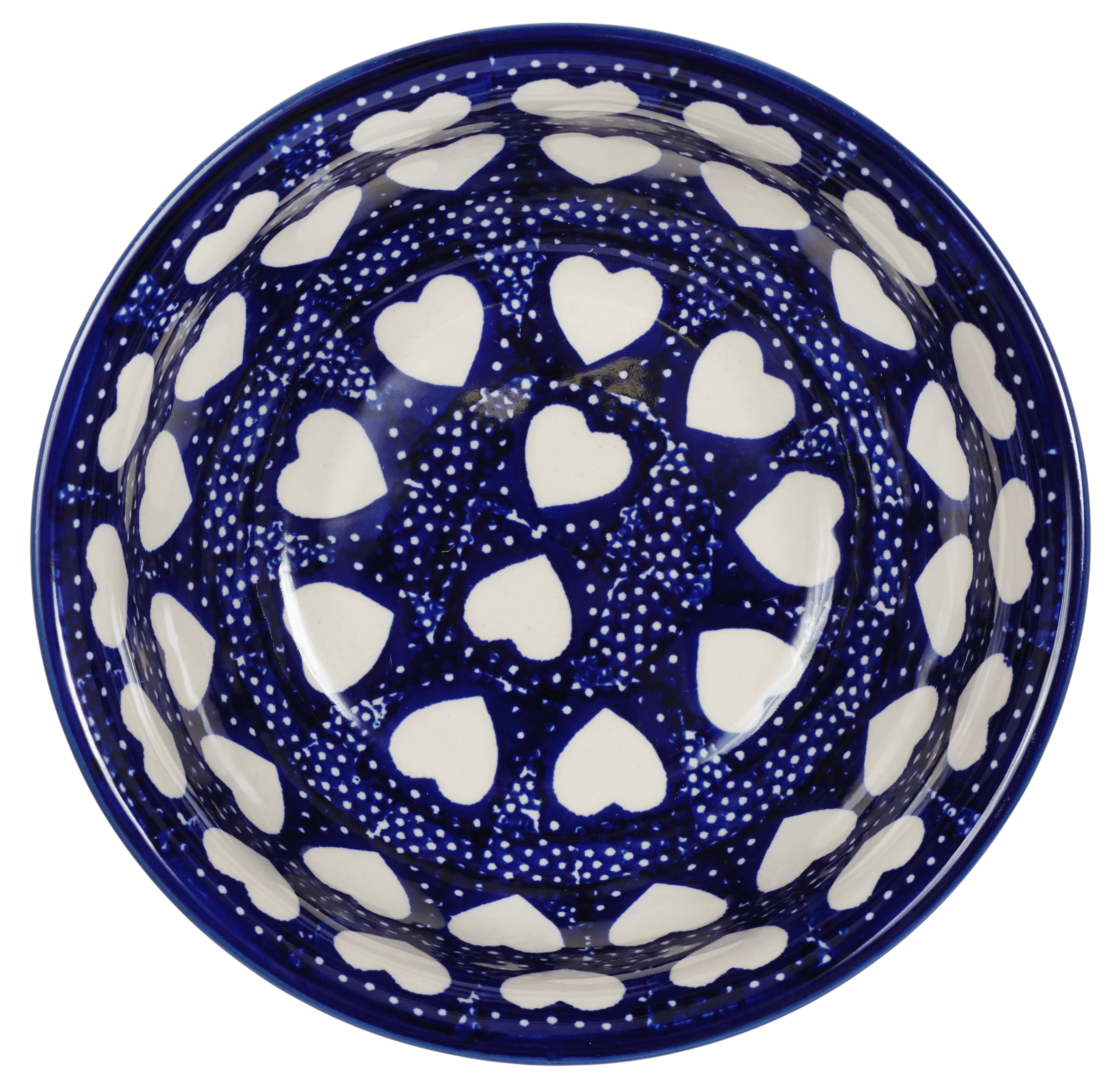 Introducing the stunning Polish Pottery 6.5" Bowl by Manufaktura, featuring the mesmerizing "Sea of Hearts" pattern (SEA). These bowls are not just your ordinary bowls - they are versatile and can be used for soups, salads, pastas, or even as small mixing bowls! So go ahead, let your culinary creativity run wild!
