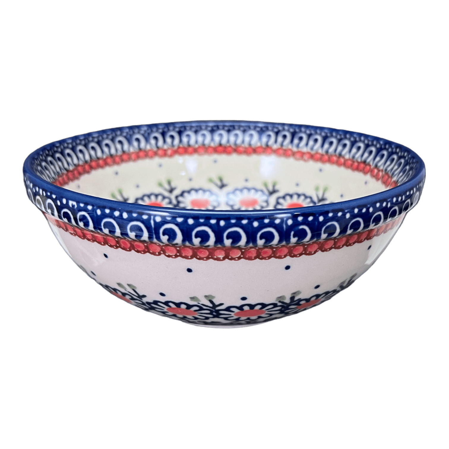 Introducing the Polish Pottery 6.75" Bowl by Manufaktura in the captivating "Daisy Chain" pattern! This versatile bowl is perfect for enjoying your favorite culinary creations, whether it's a hearty bowl of cereal, a comforting bowl of soup, a refreshing salad, a delightful scoop of ice cream, or a mouthwatering plate of pasta. The possibilities are endless!