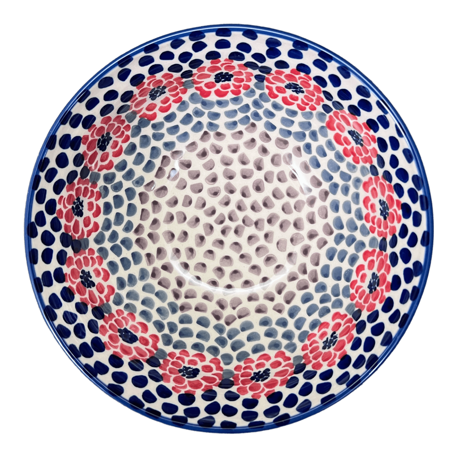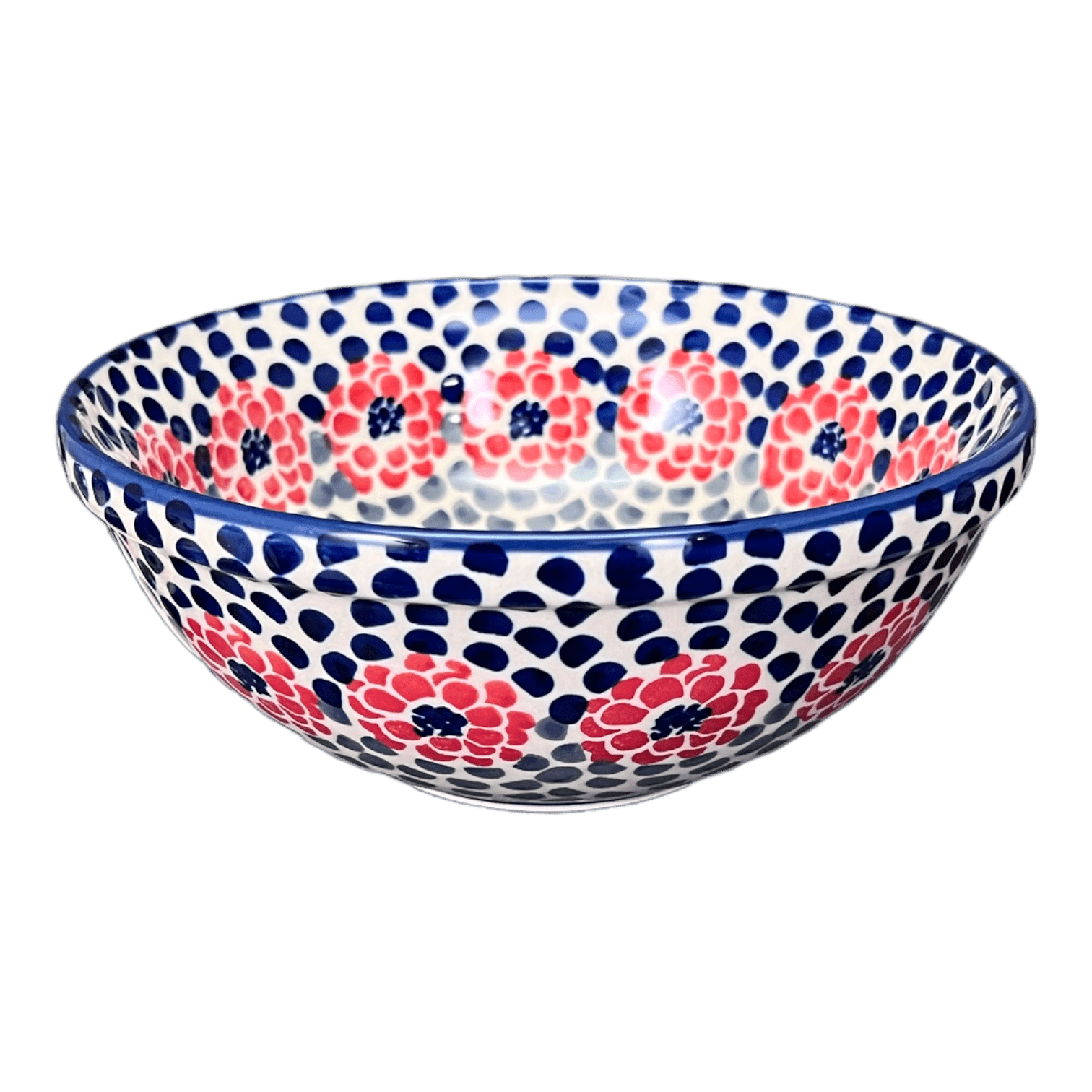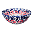Let's talk about the "Falling Petals" pattern, shall we? This stunning design incorporates delicate flowers in a predominantly vibrant red color, with whimsical accents in blue and gray. It's like having a beautiful garden right on your dining table! Each bowl is meticulously hand-painted by skilled artisans in Boleslawiec, Poland, ensuring that no two pieces are exactly alike.