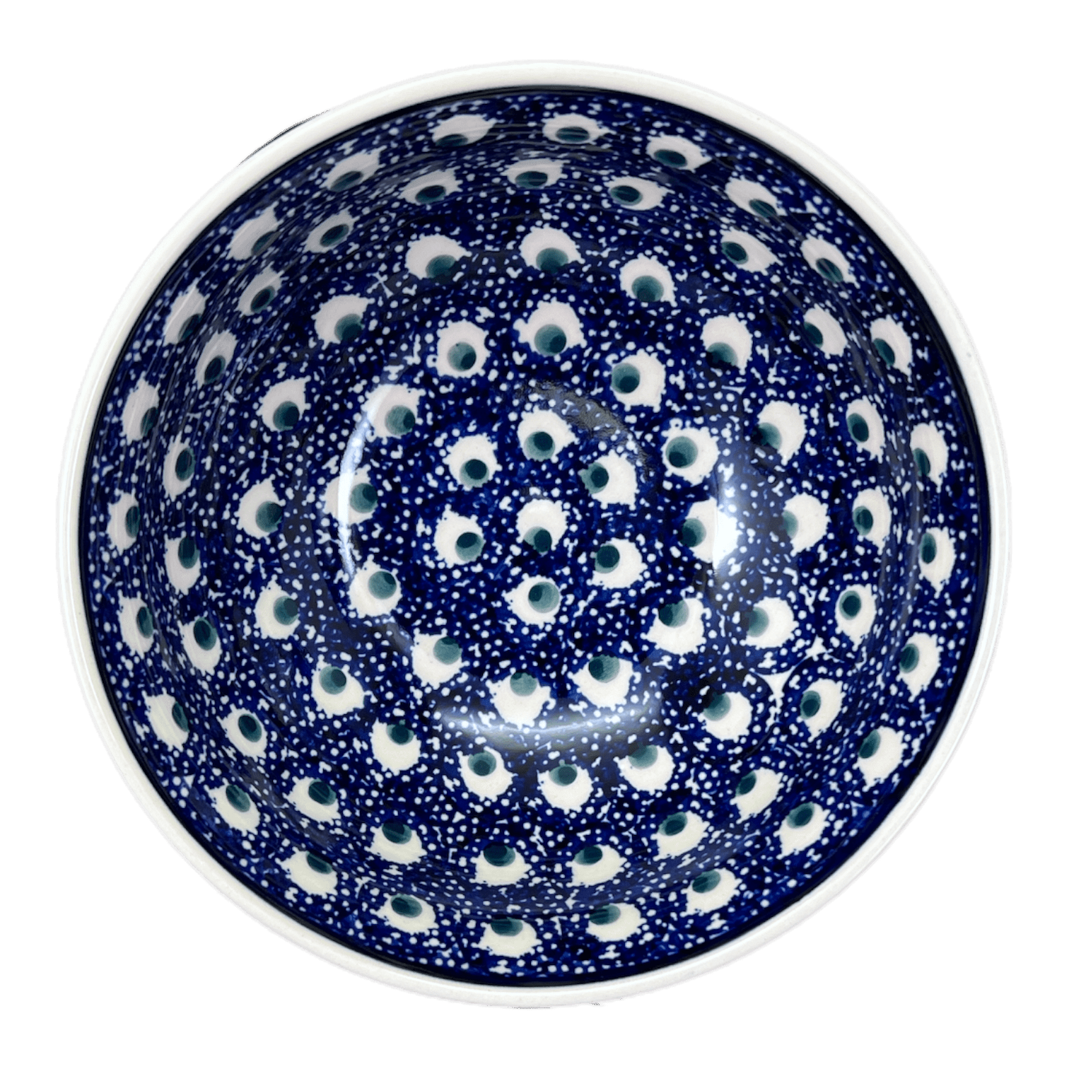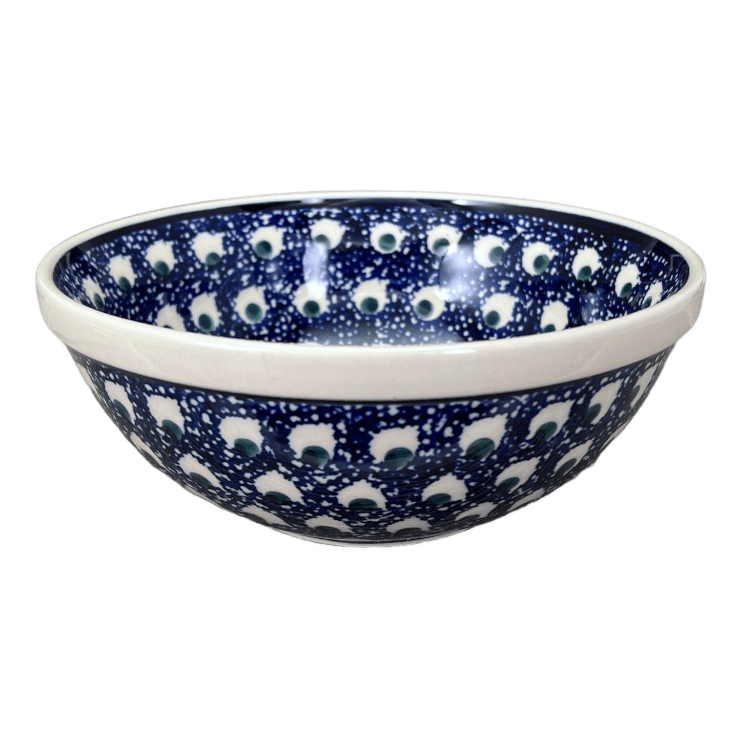 What makes the "Night Eyes" pattern truly special is its unique combination of geometric elements in a predominantly blue color, with accents in white and green. It's like having a piece of art right on your dining table! Each bowl is meticulously crafted and hand-painted in Boleslawiec, Poland by skilled artisans who pour their heart and soul into every brushstroke.
