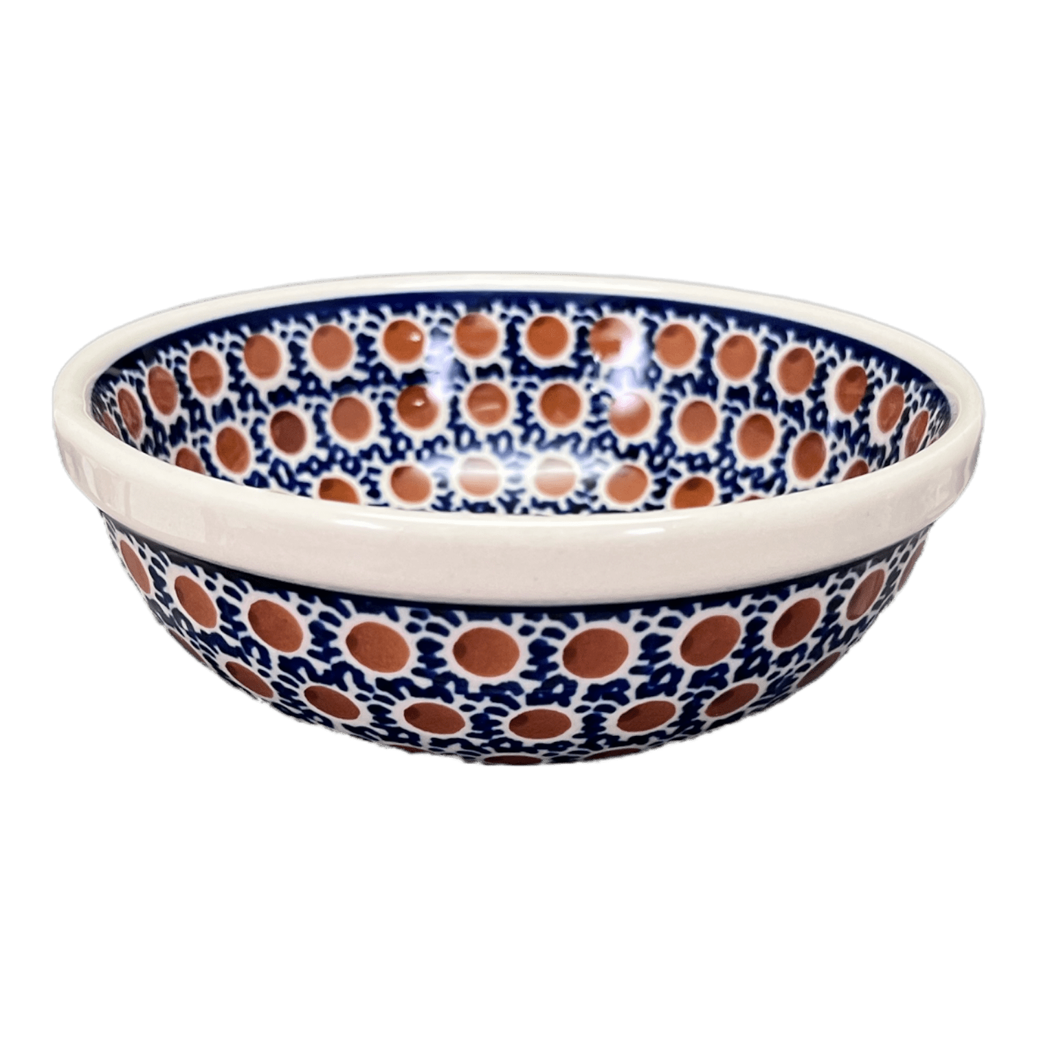 Introducing the Polish Pottery 6" Bowl by Manufaktura in the captivating "Chocolate Drop" pattern. This bowl is not only one of our best-selling items, but it is also perfect for a multitude of uses! Whether you're craving a bowl of cereal, a hearty soup, a refreshing salad, a sweet scoop of ice cream, or a handful of snacks, this bowl has got you covered. It's not just any ordinary bowl - it's a beautiful work of art that combines both style and functionality.