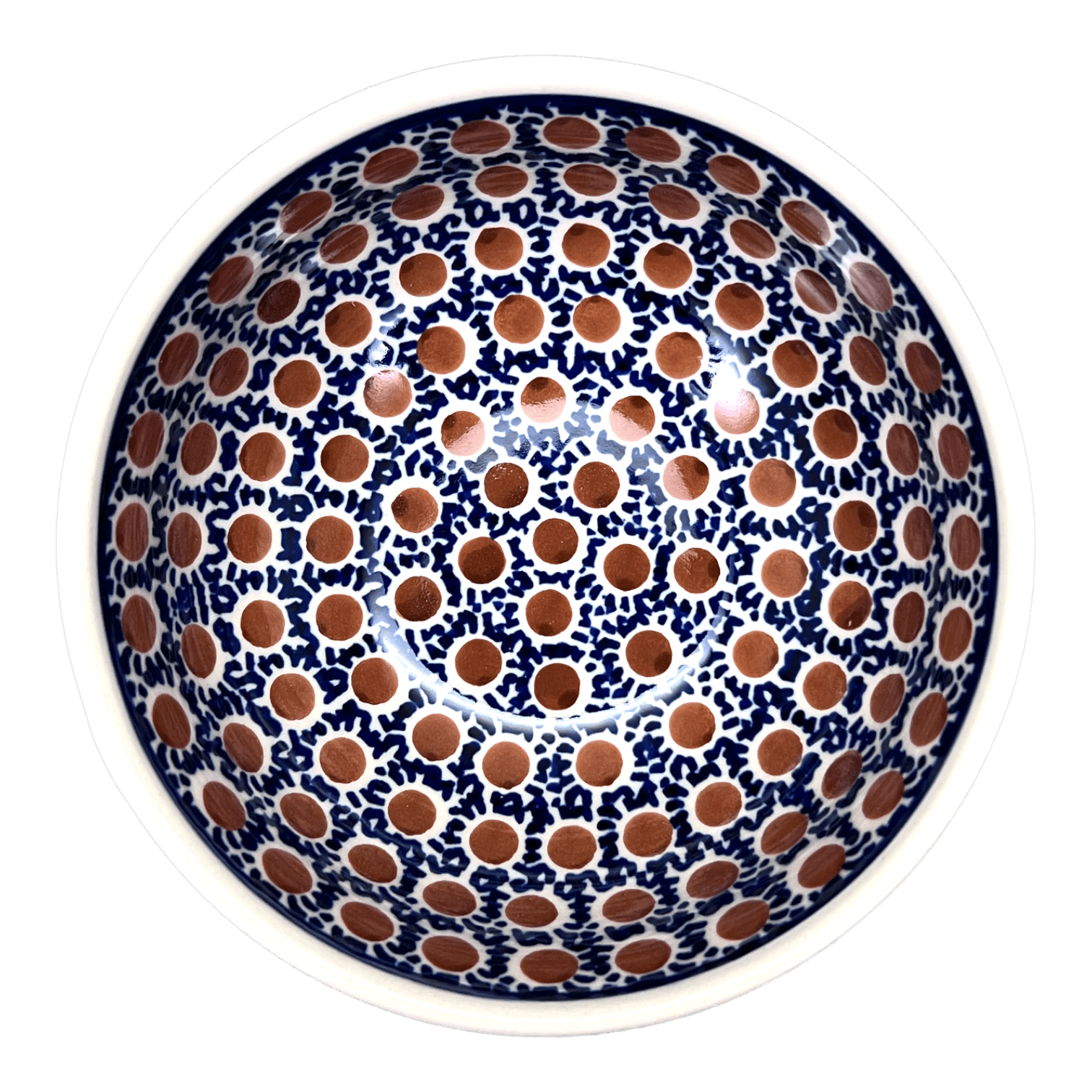 The "Chocolate Drop" pattern is a mesmerizing blend of geometric shapes, predominantly in a stunning shade of blue, with delicate accents in brown and white. Each piece is meticulously hand-painted by skilled artisans in Boleslawiec, Poland, ensuring that you receive a truly unique and exceptional piece of pottery. Polish Pottery is renowned for its ability to effortlessly add splashes of vibrant color to any home decor, and with this bowl, you can mix and match to create stunning combinations that will leave your guests in awe.