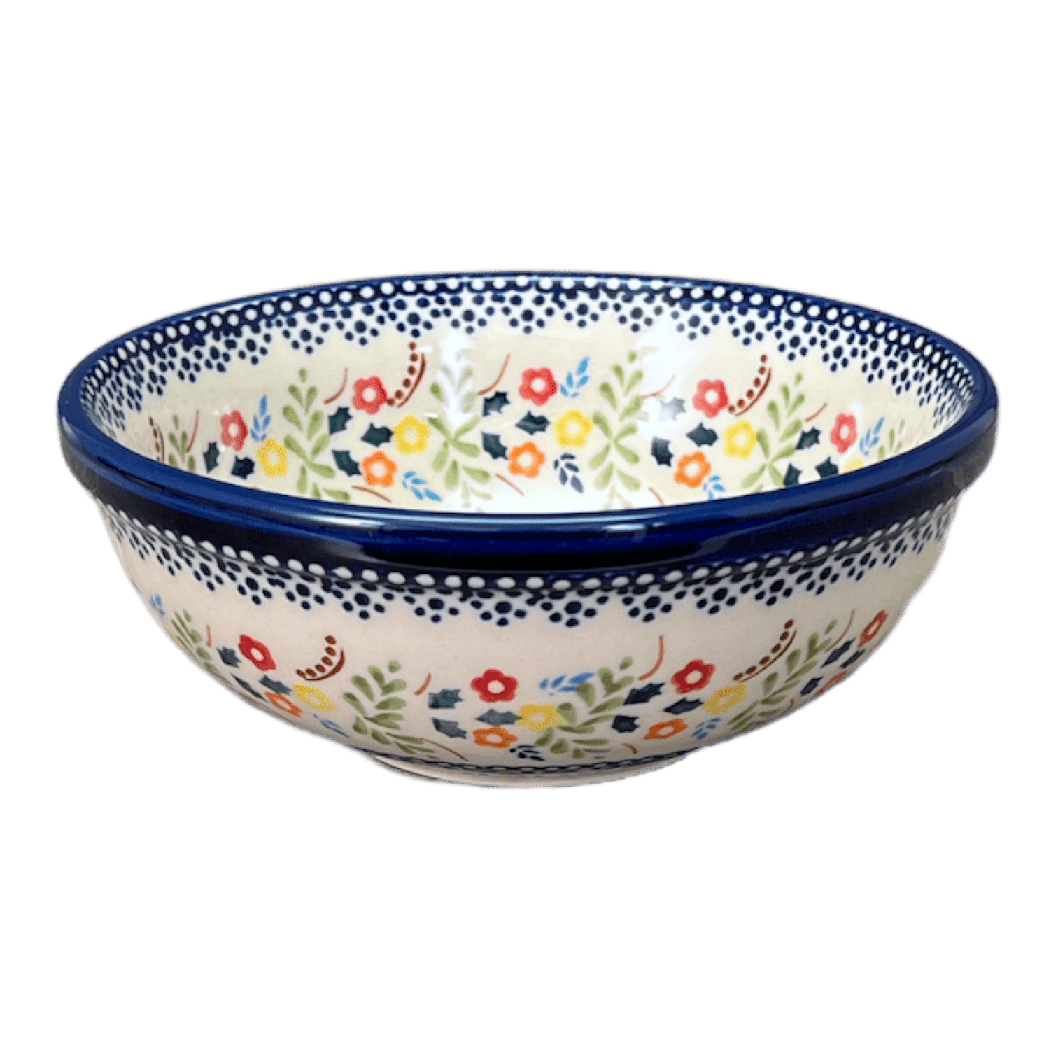 Introducing the Polish Pottery 6" Bowl by Manufaktura in the captivating "Floral Garland" pattern (AD01). Brace yourself for a delightful experience as we present to you one of our most popular items! This versatile bowl is perfect for a myriad of uses, whether you're craving a bowl of cereal, a steaming hot soup, a refreshing salad, a generous scoop of ice cream, or a delightful assortment of snacks. Prepare to be enamored by its exquisite beauty and impeccable functionality!