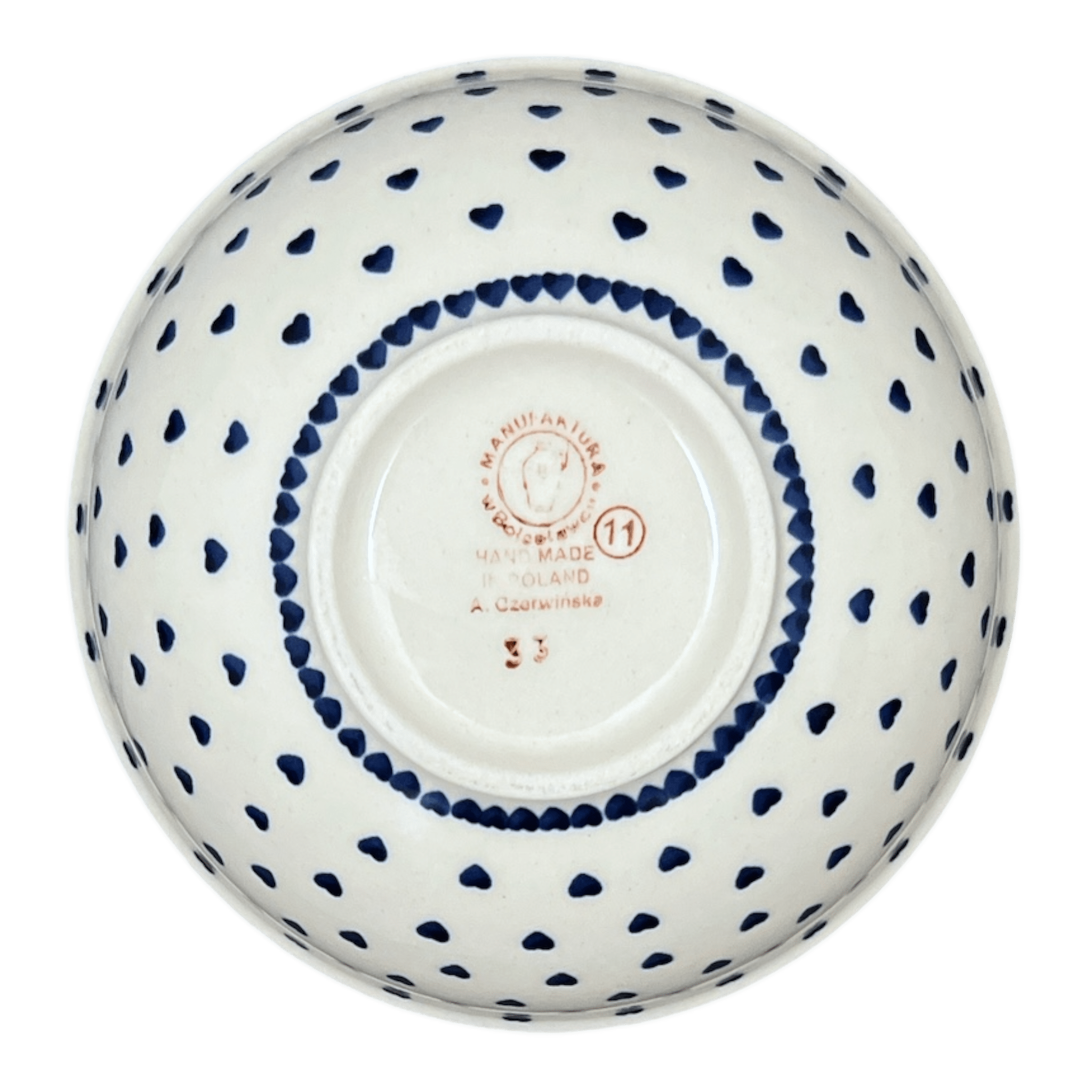 Imagine starting your day with a touch of artisan charm or winding down with a bowl that whispers stories from a quaint Polish town. The Manufaktura 6" Bowl in the enchanting "Heartfelt Blue" pattern offers just that. This versatile piece, crafted by the hands of skilled artisans in Boleslawiec, Poland, is not just a bowl but a little piece of art. Whether it’s holding your morning cereal, your evening salad, or that midnight ice cream, this bowl turns every meal into a picturesque moment. Its swirling blue hearts dance around a pristine white background, promising to steal your heart with every glance.