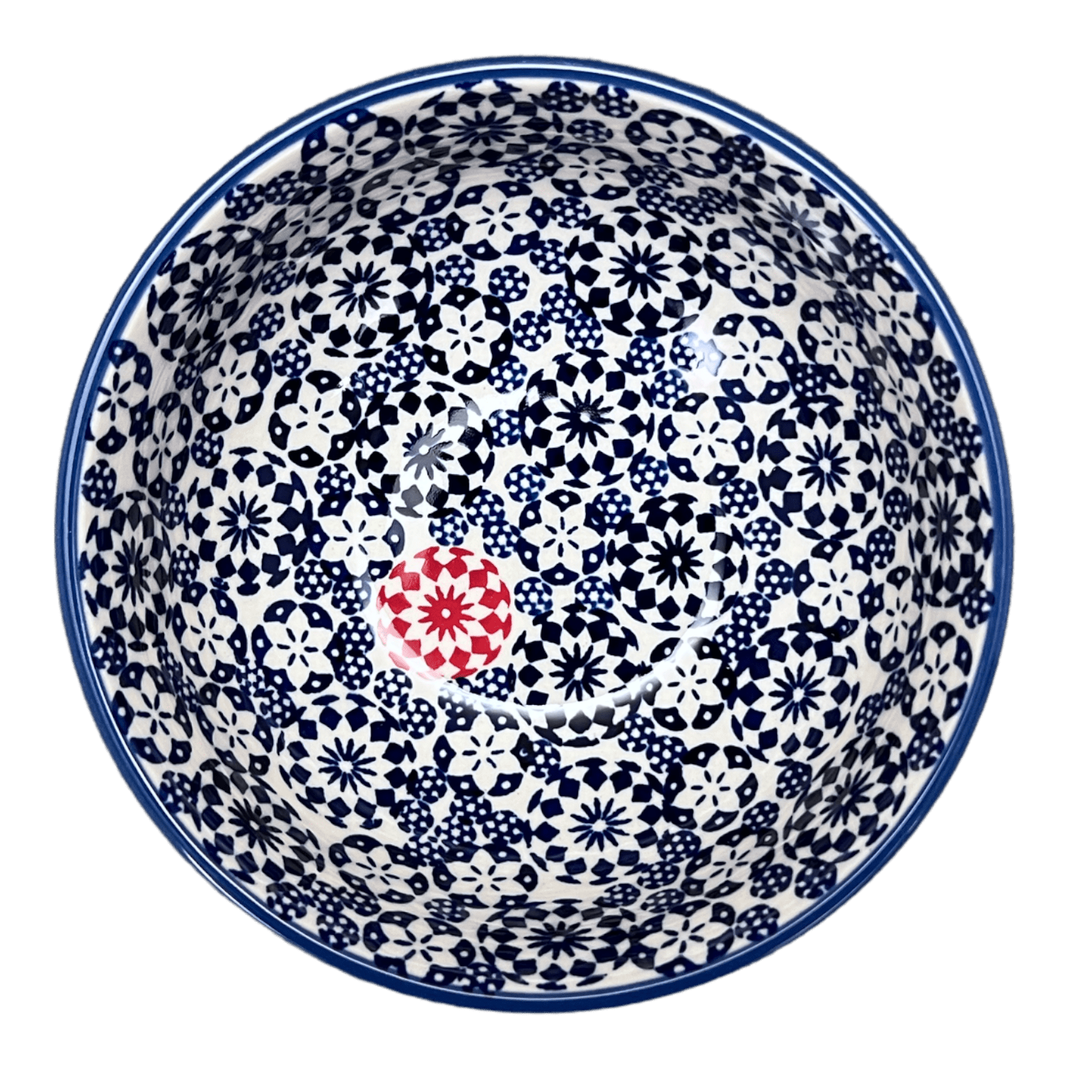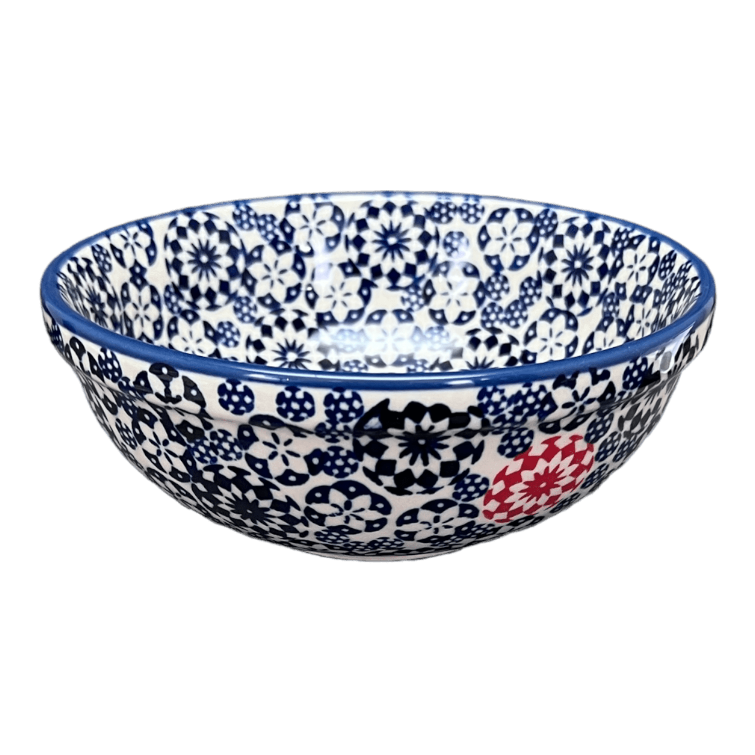 Let's talk about the "One of a Kind" pattern, shall we? Prepare to be captivated by its striking design elements that seamlessly blend geometric shapes with a predominantly blue color palette, adorned with accents in vibrant red and crisp white. Each piece is meticulously hand-painted by skilled artisans in Boleslawiec, Poland, ensuring that no two bowls are exactly alike. This means you'll be the proud owner of a truly unique work of art!