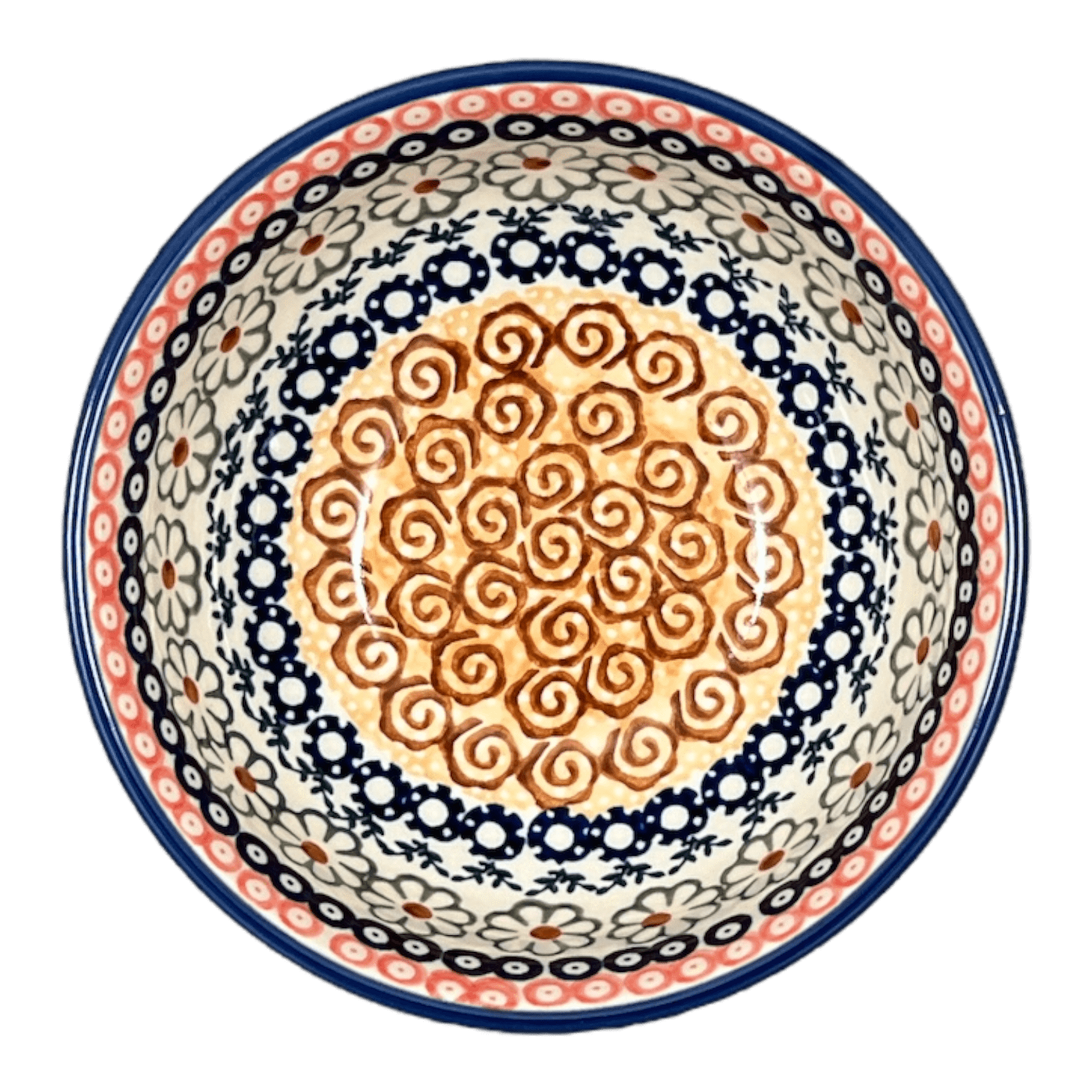 Imagine a dash of artisan charm every morning as you scoop up your favorite cereal or soup from a stunningly crafted Polish Pottery Bowl. Not just any bowl, but one from the renowned workshops of Manufaktura in Boleslawiec, Poland. The "Chocolate Swirl" pattern, a delightful dance of flowers and swirls in soothing shades of brown, white, blue, and green, will transport your dining experience to a new level of elegance. This 6-inch masterpiece, adorned in the exquisite Unikat design, represents a unique blend of artistry and tradition. Each bowl is not just a container but a piece of art, with intricate designs that signify the pinnacle of an artist’s craftsmanship, highlighted by the prestigious UNIKAT stamp that marks its authenticity and exclusivity.