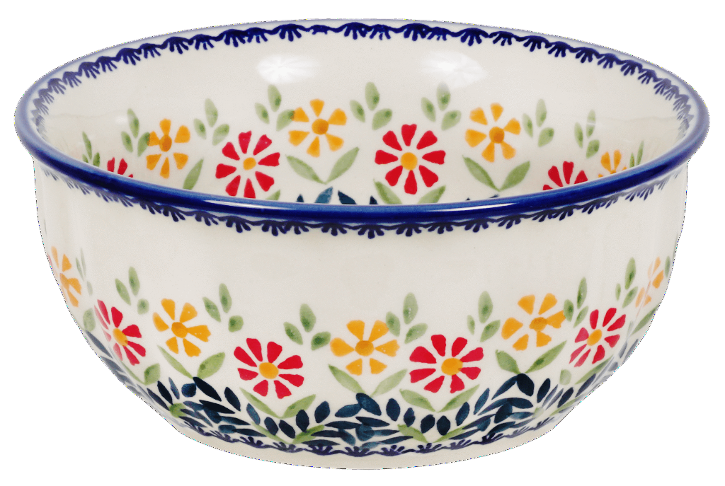 What makes this pattern even more special is its Traditional level of artistry. Traditional patterns are the most common and recognizable patterns in the world of Polish pottery. Using the "punching" technique of hand stamping, highly skilled artists create an array of designs and colors largely inspired by nature. The demand for these patterns is so high that there is no limit in production, and a large pool of talented artists work together to meet the demand. As a result, each piece is unique, with slight variations from one to another.