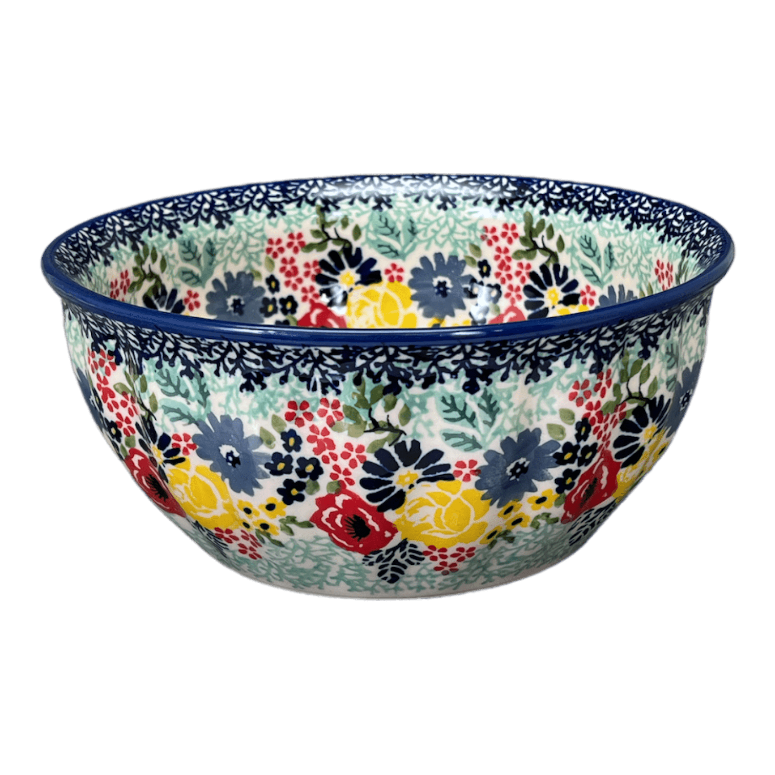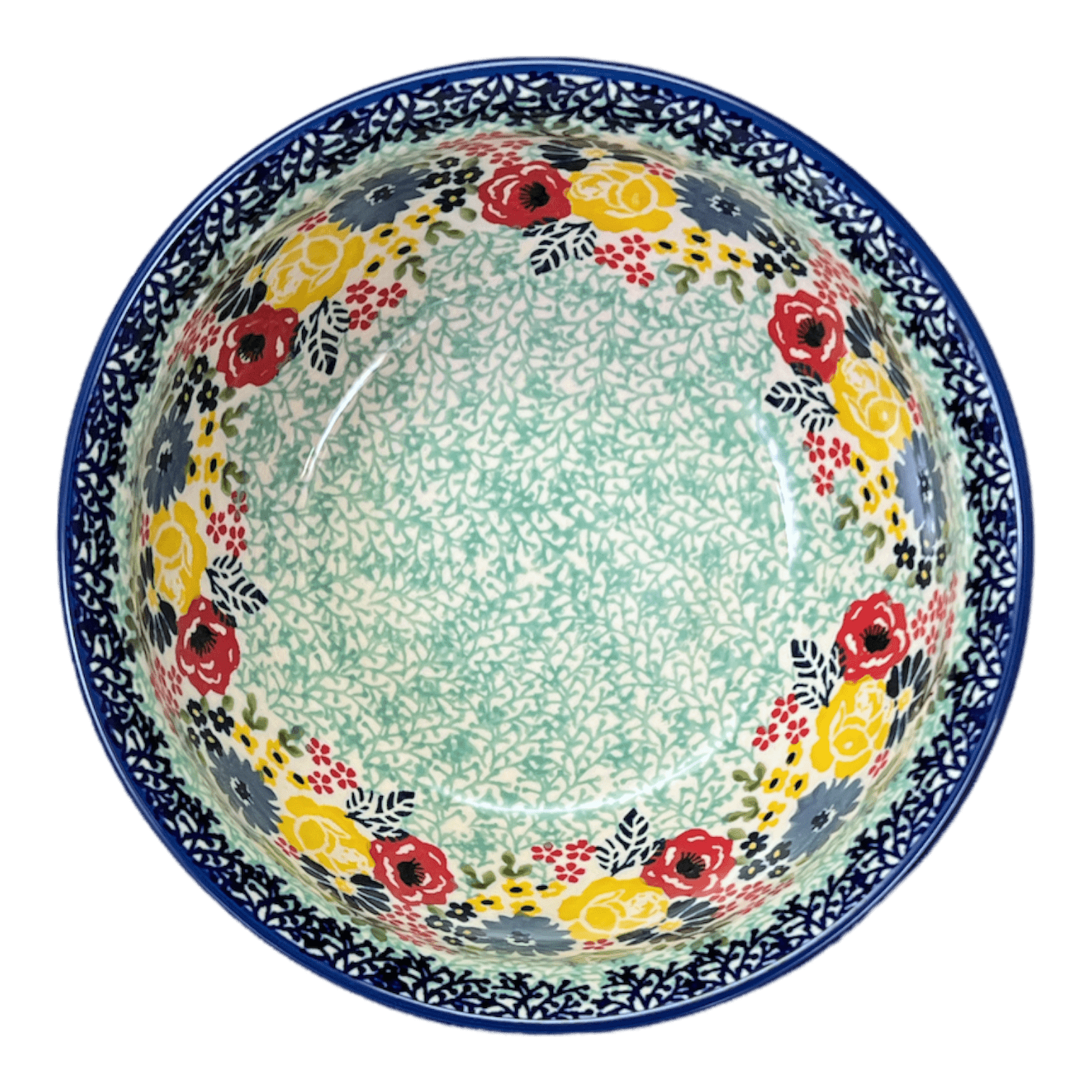 Introducing the Polish Pottery 7.75" Bowl by Manufaktura in the delightful "Garden Party" pattern (BUK1). This versatile bowl is not just your ordinary kitchen essential, it is a vessel of culinary creativity! Whether you're tossing a refreshing salad, whipping up a delectable pasta dish, kneading dough for homemade bread, or conjuring any of your favorite culinary creations, this bowl is here to make your cooking experience even more enjoyable!