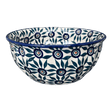 But what truly sets this bowl apart is its mesmerizing "Peacock Parade" pattern. Imagine a burst of vibrant colors dominated by shades of blue, with accents of green and white that resemble the majestic feathers of a peacock. Each brushstroke is meticulously hand-painted by skilled artisans in Boleslawiec, Poland, ensuring that no two bowls are exactly alike.