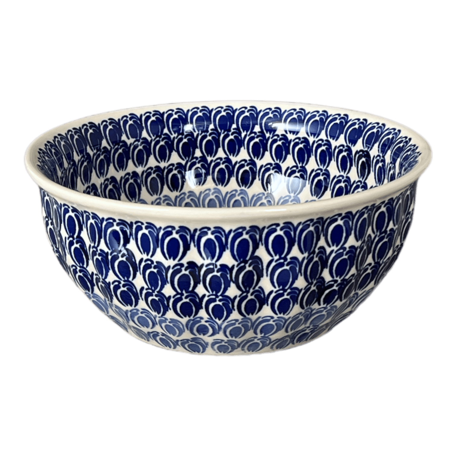 The "Tulip Blues" pattern is a visual delight, combining the elegance of flowers with a predominantly blue color palette and accents in dusty blue. It's like having a piece of art right in your kitchen! The craftsmanship of this bowl is second to none, as it is meticulously made and hand-painted in Boleslawiec, Poland by skilled artisans who have perfected their craft over generations.