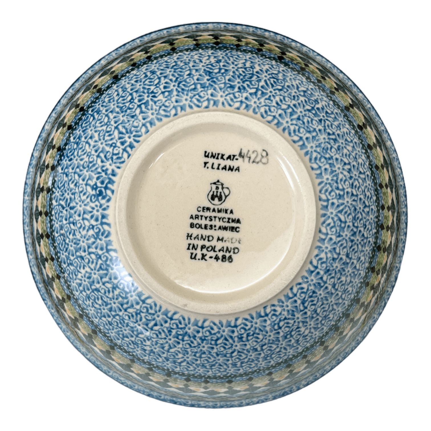 Introducing the stunning Polish Pottery 7.75" Bowl by Ceramika Artystyczna in the captivating "Aztec Blues" pattern (U4428). This is not your average bowl - it's a masterpiece! Crafted with love and care by skilled artisans in Boleslawiec, Poland, this bowl is a true work of art.