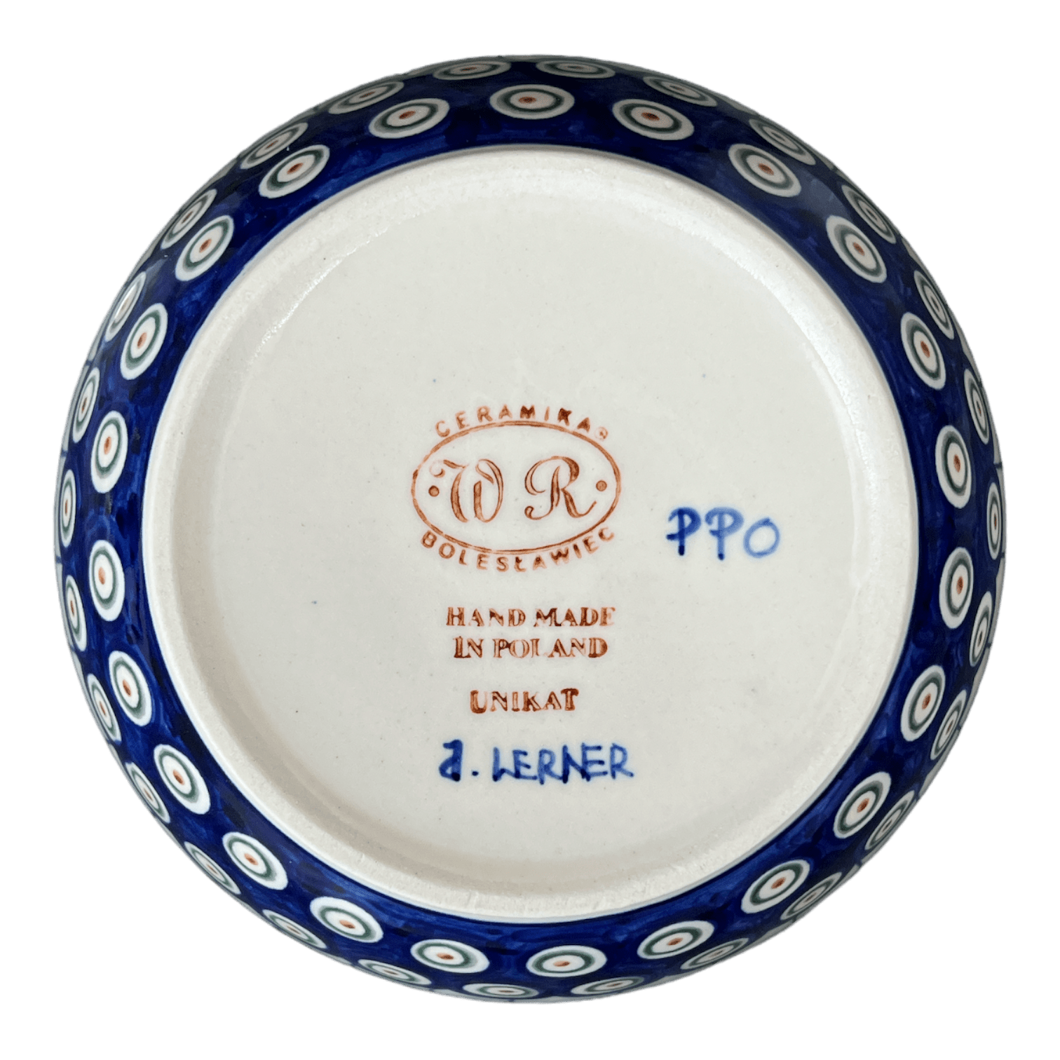 Bowl, Round, 7", WR (WR12C) in "Peacock in Line" by W.R. Ceramika | WR12C-SM1 is backordered and will ship as soon as it is back in stock.