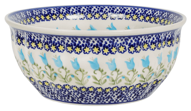 Imagine serving your next meal in a masterpiece of culinary artistry! Introducing the Polish Pottery Bowl by Manufaktura, not just a bowl, but a 7.75" canvas painted in the enchanting "Riverdance" pattern. This bowl is perfect for tossing up a vibrant salad, swirling a hearty pasta, or mixing your favorite dough. Its charming design features a dance of light blue bellflowers twining around green vines, set against a crisp white background peppered with tiny blue leaves. The subtle touches of white and yellow alongside dark blue accents make every glance a visual feast, transforming your dining experience into something truly magical.