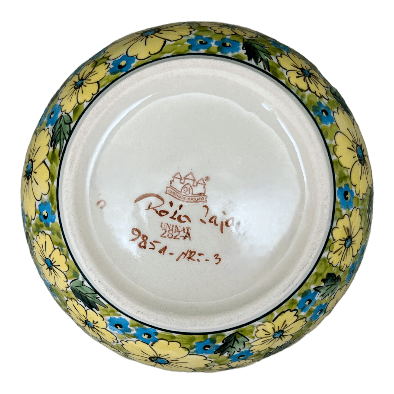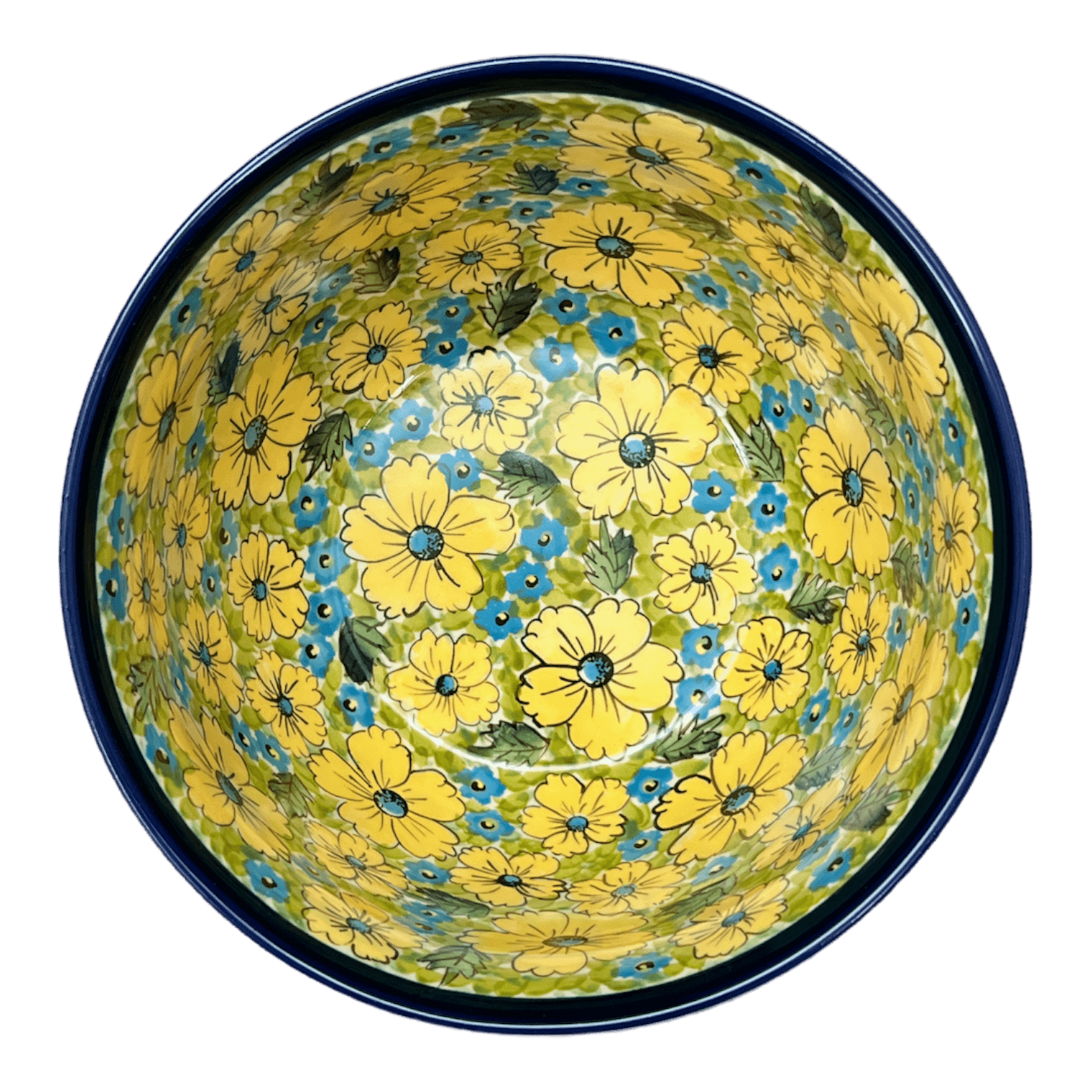 Imagine a burst of sunshine captured in the form of an exquisite 8" Polish Pottery Bowl from Zaklady, delightfully adorned with the "Sunny Meadow" pattern. This isn't just any bowl; it's a canvas showcasing vibrant large yellow flowers and delicate small blue ones, all nestled against a vivid green, leafy backdrop. Each bowl is a testament to the high artistry of Zaklady's skilled craftsmen, hailing from the quaint town of Boleslawiec, Poland. Known for its durability and beautiful hand-painted designs, this bowl is not just a piece of pottery—it's a piece of history and a vibrant addition to any home.