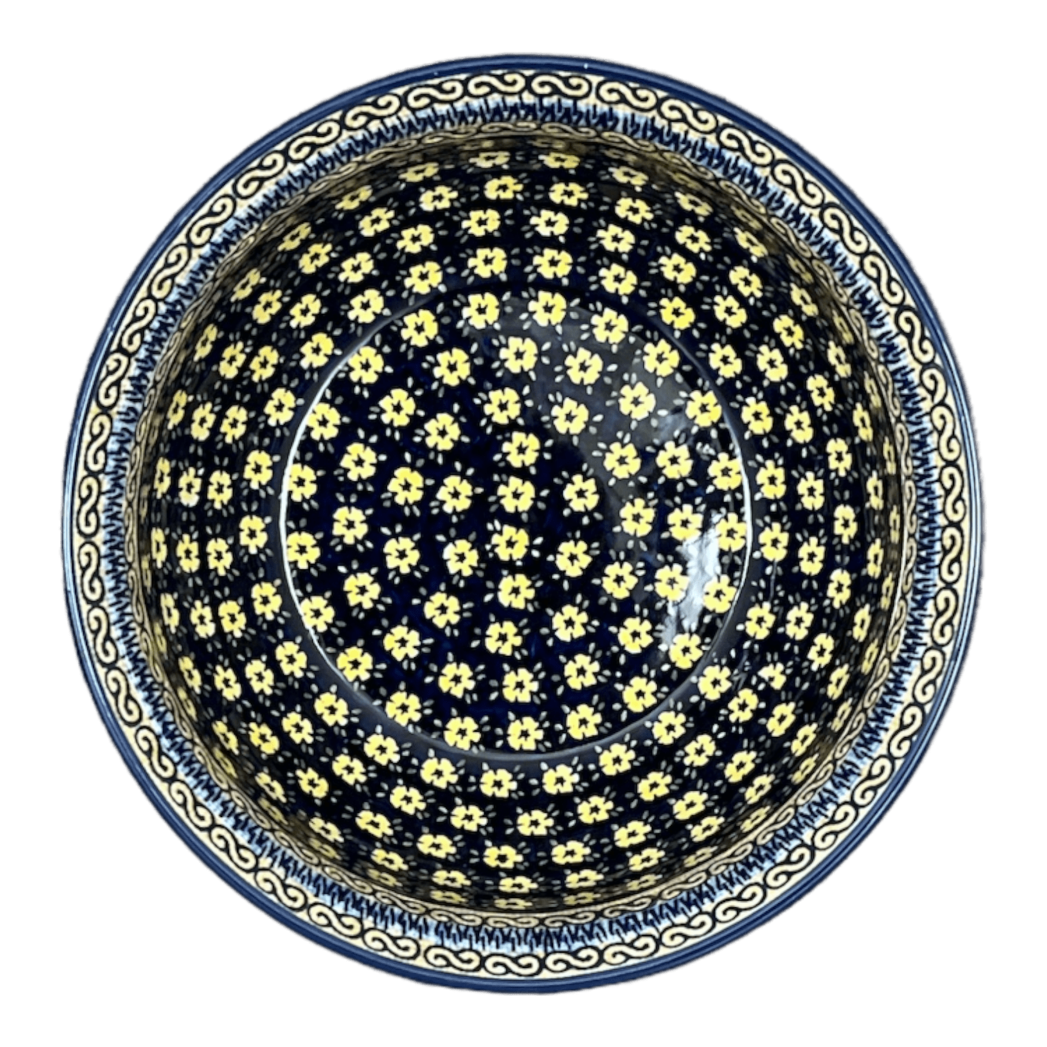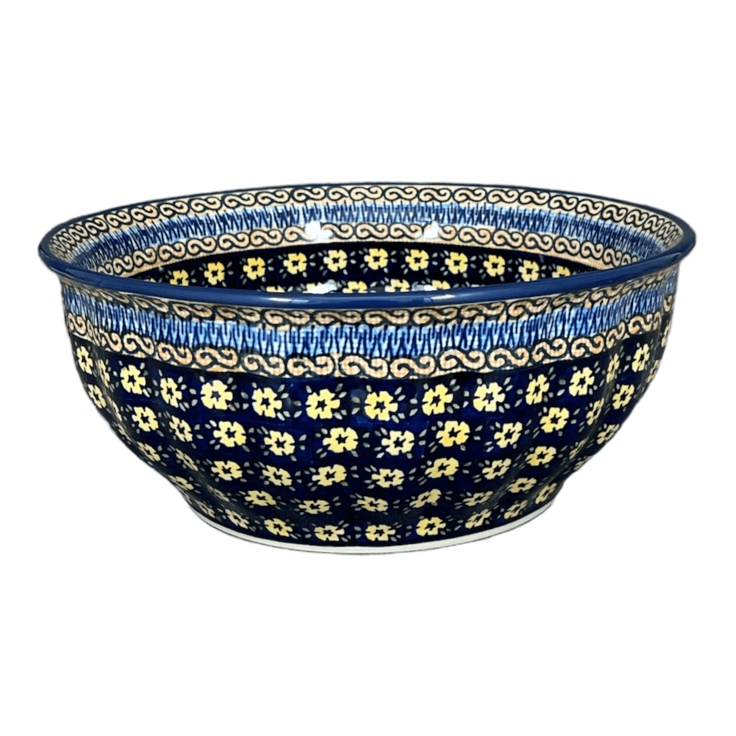 Imagine a table set with a centerpiece that not only catches the eye but also tells a story of artistry and tradition. Enter the Manufaktura 9" Polish Pottery Bowl in the enchanting "Floral Formation" pattern. This bowl, perfect for serving everything from a crisp summer salad to a hearty winter stew, doubles as a splendid mixing bowl for your culinary creations. The vibrant design features a symphony of flowers in rich blues, accented with cheerful yellows and earthy browns. This isn’t just any bowl; it’s a portal to a world of color and craftsmanship.