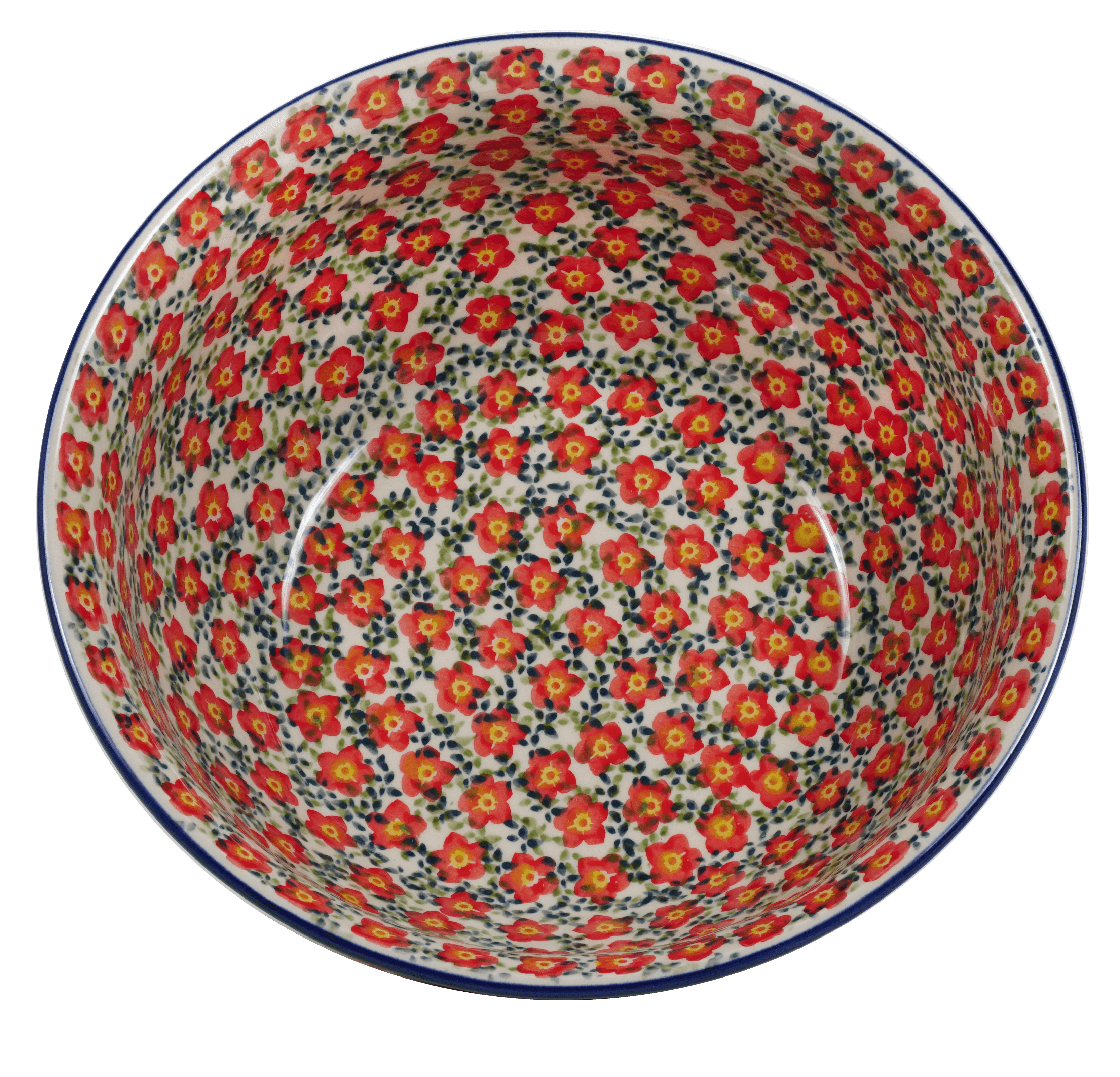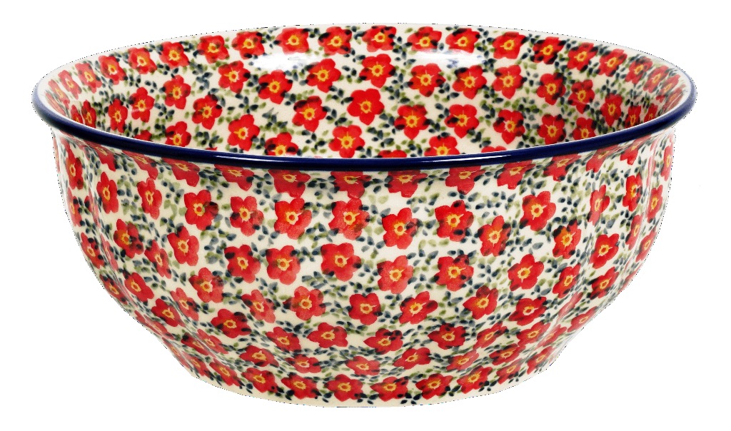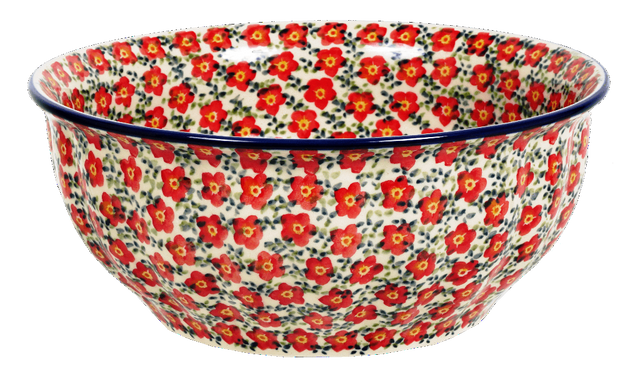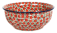 Step into a world where tradition meets modern artistry with the Manufaktura 9" Round Polish Pottery Bowl, a stunning centerpiece that transforms any meal into a vibrant celebration. This exquisite bowl, crafted in the heart of Boleslawiec, Poland, is not just a vessel for your delicious dishes—it's a piece of art. The "Floral Revival Red" pattern dances around the bowl, featuring an elegant array of red flowers set against a crisp white background, accented with lively green leaves and subtle orange touches. Each brush stroke tells a story of meticulous craftsmanship, making it a delightful addition to your dinner table or a cherished gift for someone special.