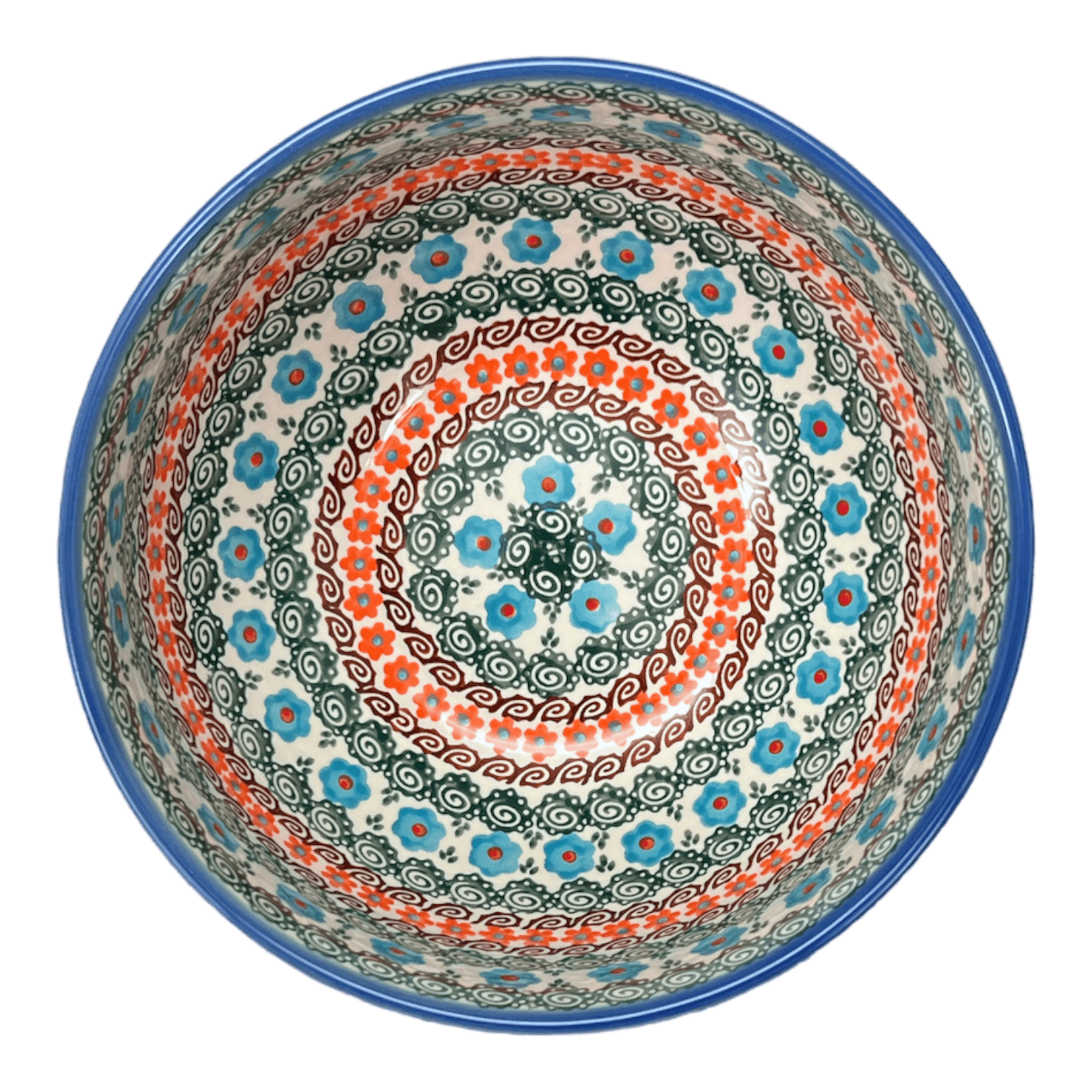 Imagine a bowl so vibrant and charming that it could almost tell tales of ancient crafts! Enter the "Teal Pompons" Polish Pottery Bowl by Andy, a splendid concoction of art and utility. This 9-inch round, deep bowl is your perfect companion for twirling pasta or tossing a fresh salad. Each piece, meticulously hand-painted in the picturesque town of Boleslawiec, Poland, showcases a delightful dance of large teal flowers with fiery red centers, encircled by whimsical bands of small orange blossoms and green spirals. The enchanting "Teal Pompons" pattern, achieved through the traditional "punching" technique of hand stamping, is a testament to the skills of local artisans who draw inspiration from the lush landscapes of their homeland.