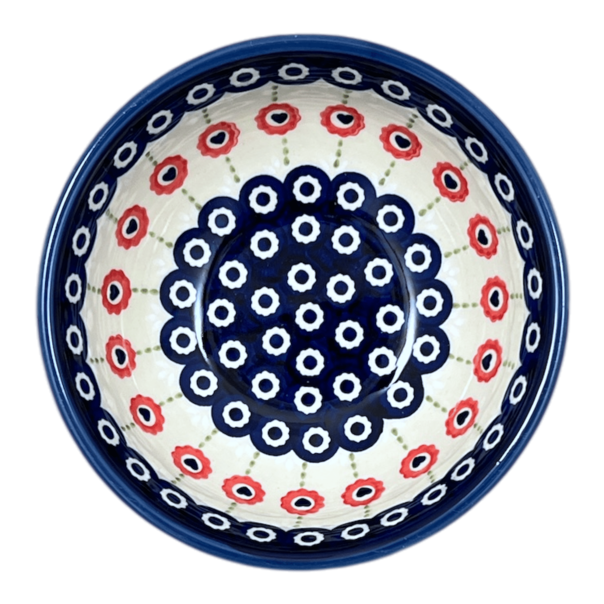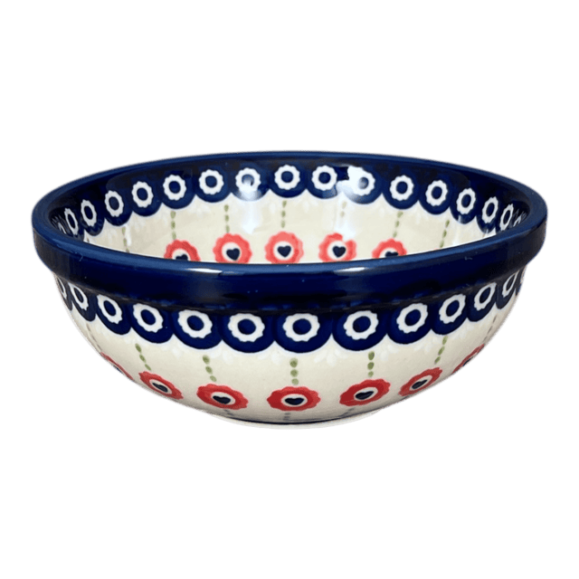 Imagine starting your day with a splash of vibrant colors and a touch of artistic excellence! The Polish Pottery Bowl from Manufaktura, adorned in the captivating "Hearts in Bloom" pattern, brings just that to your table. This charming 6" bowl is a masterpiece of functionality meets art. Use it for anything from your morning cereal to a late-night ice cream treat. Each bowl features a delightful mix of cobalt blue and fiery red floral elements, intertwined with cheerful green accents, making every bite you take a little more special.
