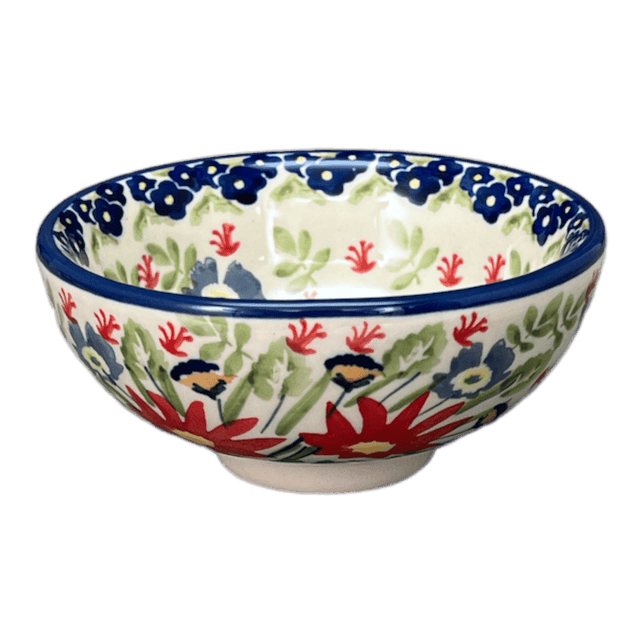 Imagine a splash of vibrant colors dancing across your table - that's exactly what the Manufaktura Polish Pottery Bowl in the dazzling "Floral Fantasy" pattern brings to your home. This charming 4.25" dipping bowl is more than just a dish; it's a portal to a world of blooming red and yellow flowers, delicate blue and yellow florets, and a mesmerizing array of leaves and swirls, all set against a crisp white background. Each piece, lovingly hand-painted by skilled artisans in Boleslawiec, Poland, showcases a signature blend of function and beauty. Whether you're hosting a cozy family dinner or a formal gathering, this bowl is sure to steal the spotlight!
