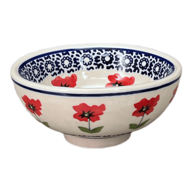 Imagine a burst of colors and patterns that transport you straight to a vibrant Polish garden! Introducing the Polish Pottery Bowl from Manufaktura, sized perfectly at 4.25 inches for all your dipping delights. This delightful bowl is a part of the enchanting "Poppy Garden" collection, where every piece is a canvas showcasing the vivid dance of red poppies, intertwined with delicate white and blue floral accents, all set against a crisp white backdrop. This pattern not only embodies the joyous spirit of nature but also brings the traditional artistry of Polish pottery right into your home.