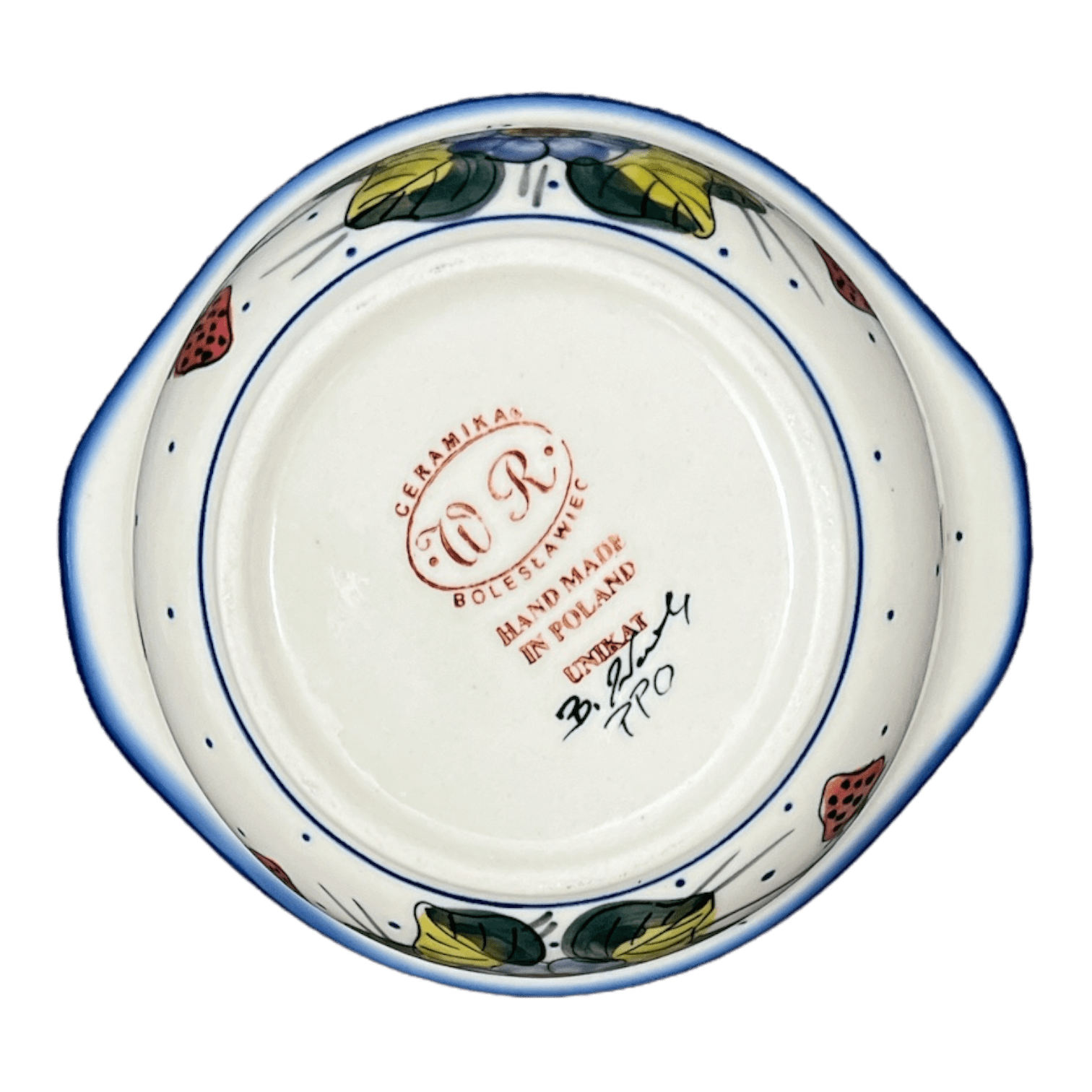 Bowl, Round, Soup, 7.25" x 6.25", WR (WR51B) in "Strawberries & Blossoms" by W.R. Ceramika | WR51B-WR2 is backordered and will ship as soon as it is back in stock.