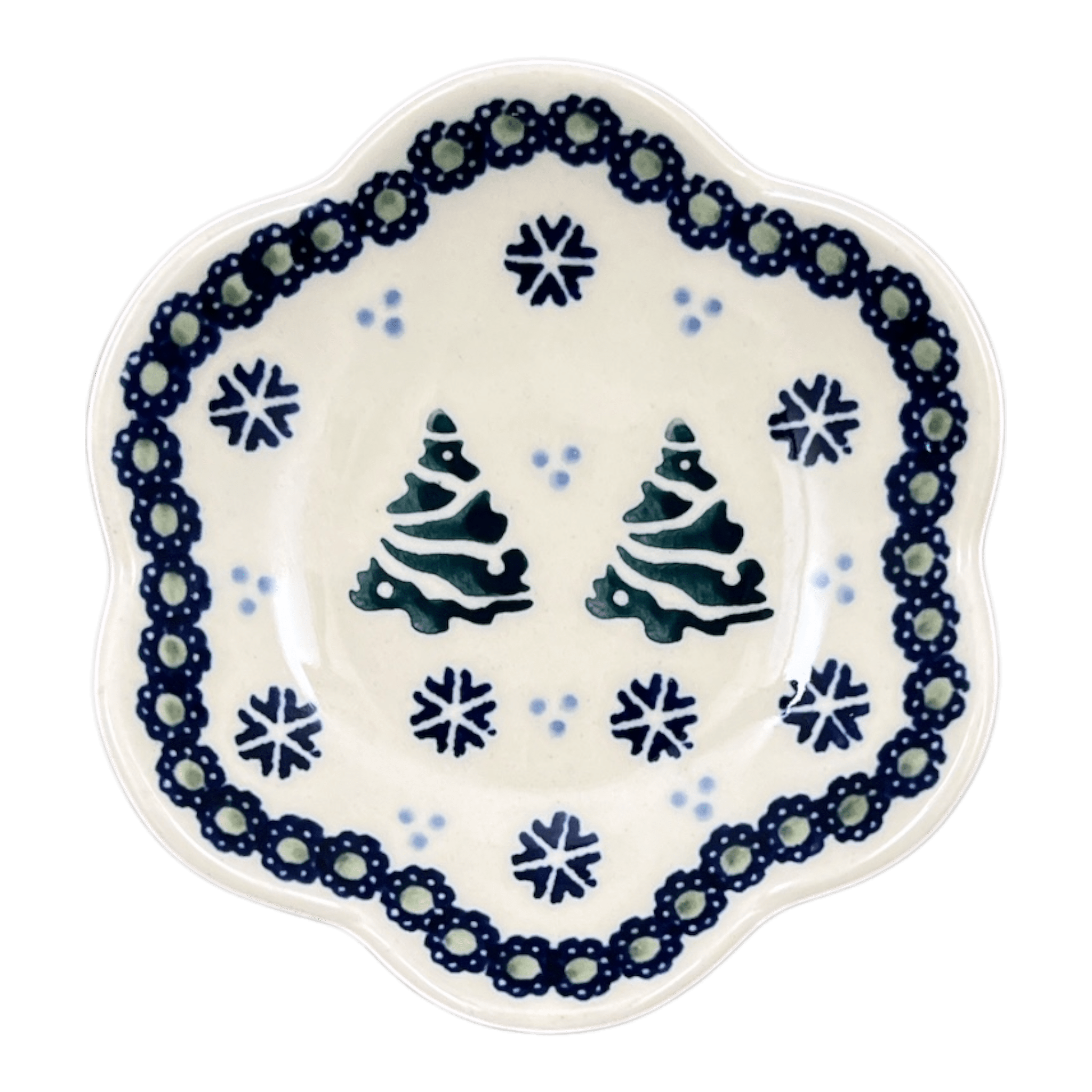 Bowl, Scalloped, Shallow, 4.25", (P205) in "Snowy Pines" by Manufaktura | P205T-U22 is backordered and will ship as soon as it is back in stock.