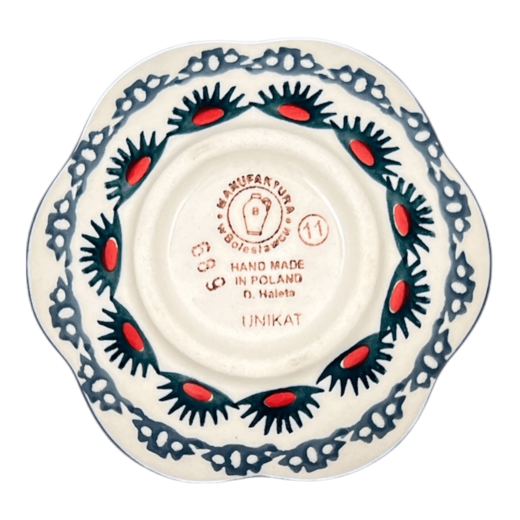 The "Scandinavian Scarlet" pattern isn’t just any design; it belongs to the elite Unikat category, denoting a level of artistry that transcends the ordinary. Unikat, meaning 'unique' in Polish, represents designs that are more intricate and involve a broader palette of colors and motifs. Each Unikat piece bears a special stamp on its base, a mark of authenticity and exclusivity, signifying that the pattern is proprietary to the manufacturer. These pieces are crafted by a select group of artists who have reached a pinnacle of pottery painting prowess, making this bowl not only a functional utensil but also a collector's delight. This small yet stunning bowl is perfect for those who appreciate art that tells a story and serves a purpose.
