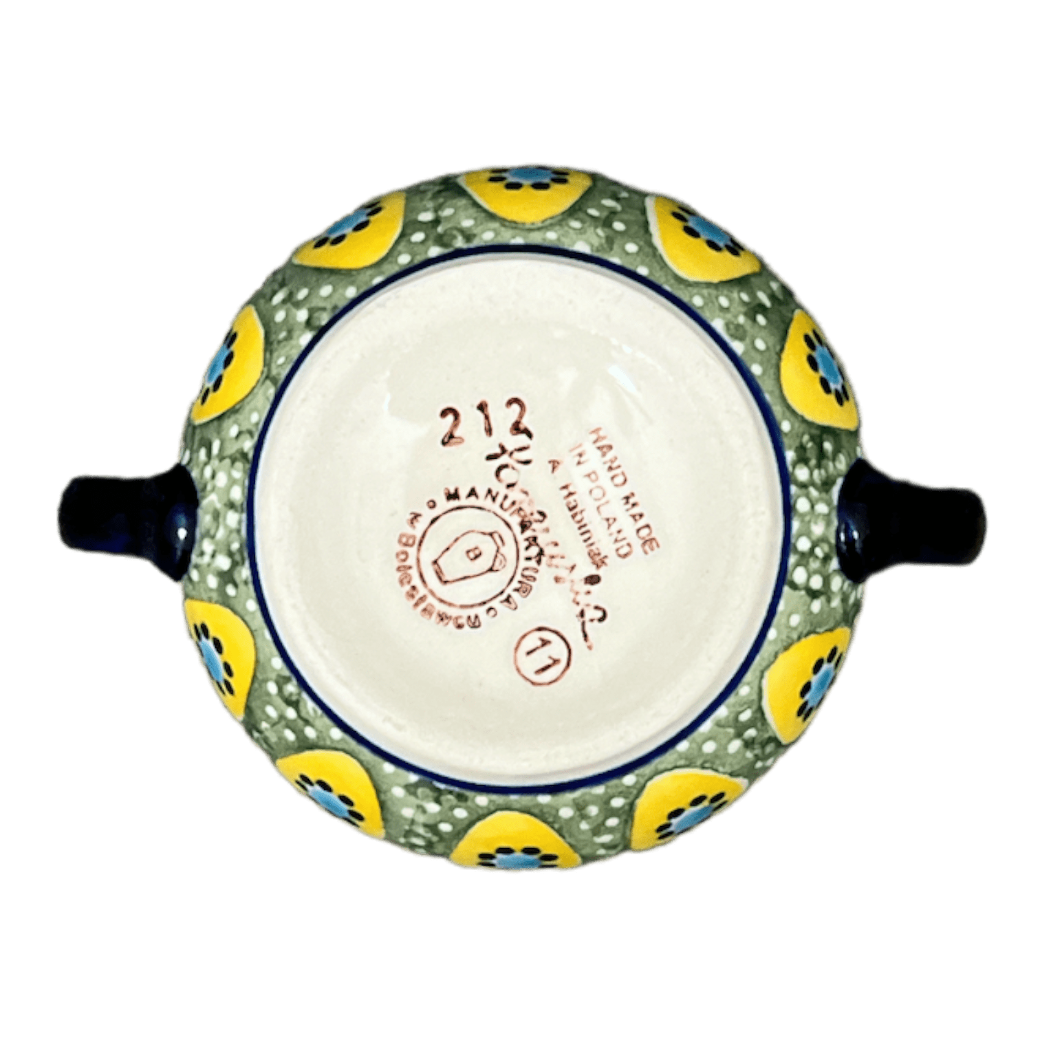 The "Sunnyside Up" pattern isn't just about brightening your kitchen; it represents the pinnacle of craftsmanship. As a Signature level pattern, each piece carries the exclusive "UNIKAT" stamp on its base, signifying the highest level of artistic achievement. These sugar bowls are crafted by master artists who oversee the entire process from design to production, ensuring that each piece is a unique work of art. The limited availability of these pieces makes them not only a joy to behold but also a valuable collector’s item. Whether used daily or displayed as a centerpiece, this sugar bowl serves as a testament to the artistry and tradition of Polish pottery.