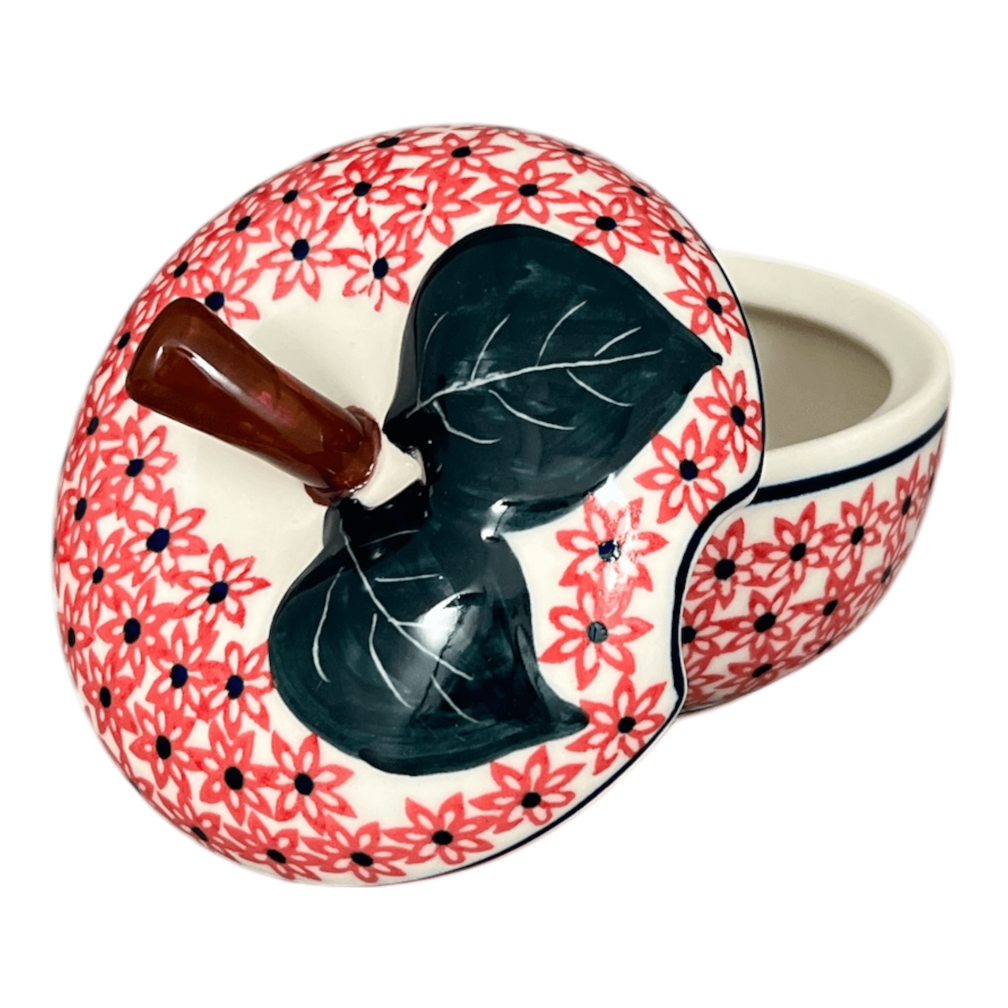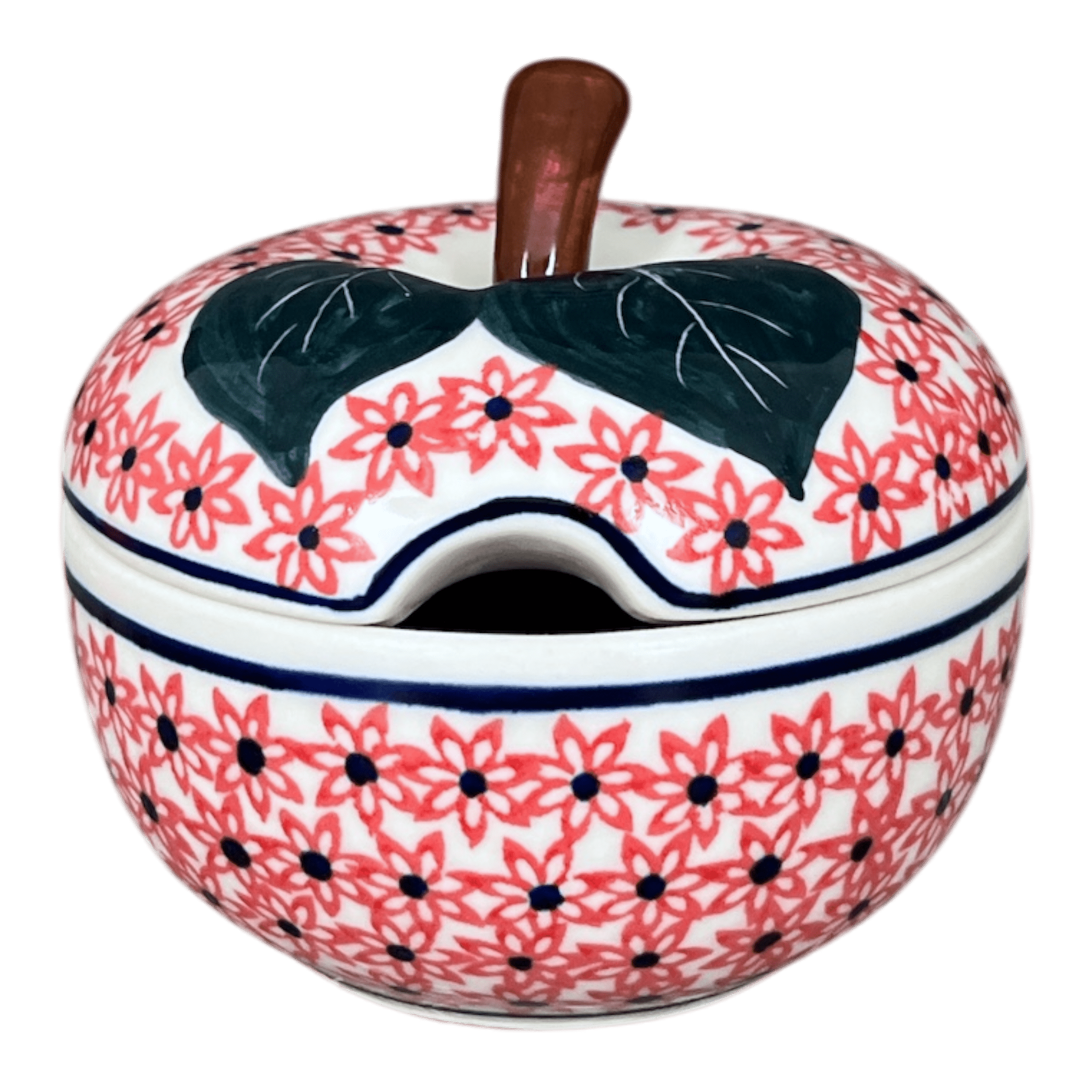 Add some color to your counter or table with this unique apple shaped sugar bowl from W.R. Ceramika!