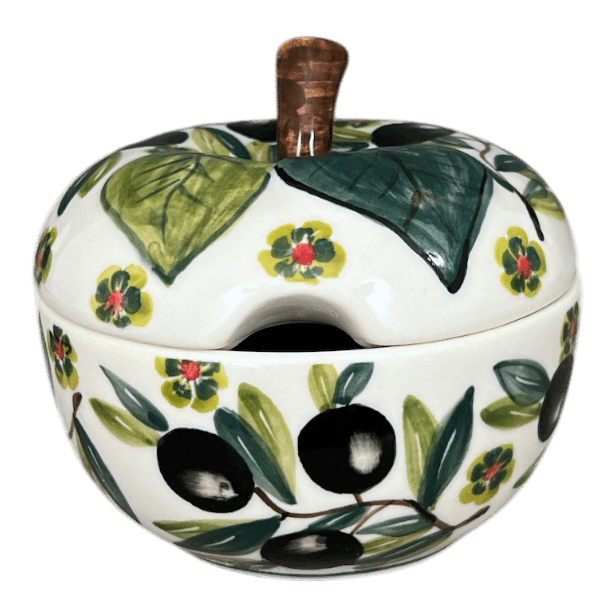 Bowl, Apple-Shaped, Sugar Bowl, 4.5". WR, WR (WR9C) in "Olive Grove" by W.R. Ceramika | WR9C-WR56 is backordered and will ship as soon as it is back in stock.