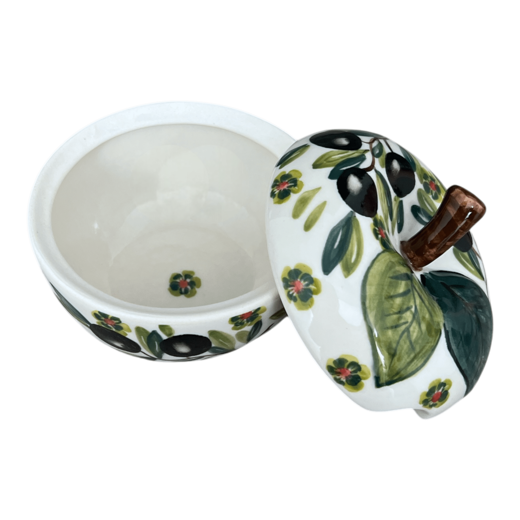 Add some color to your counter or table with this unique apple shaped sugar bowl from W.R. Ceramika!