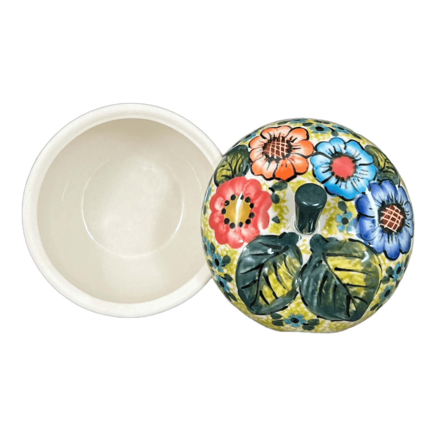 Add some color to your counter or table with this unique apple shaped sugar bowl from W.R. Ceramika!