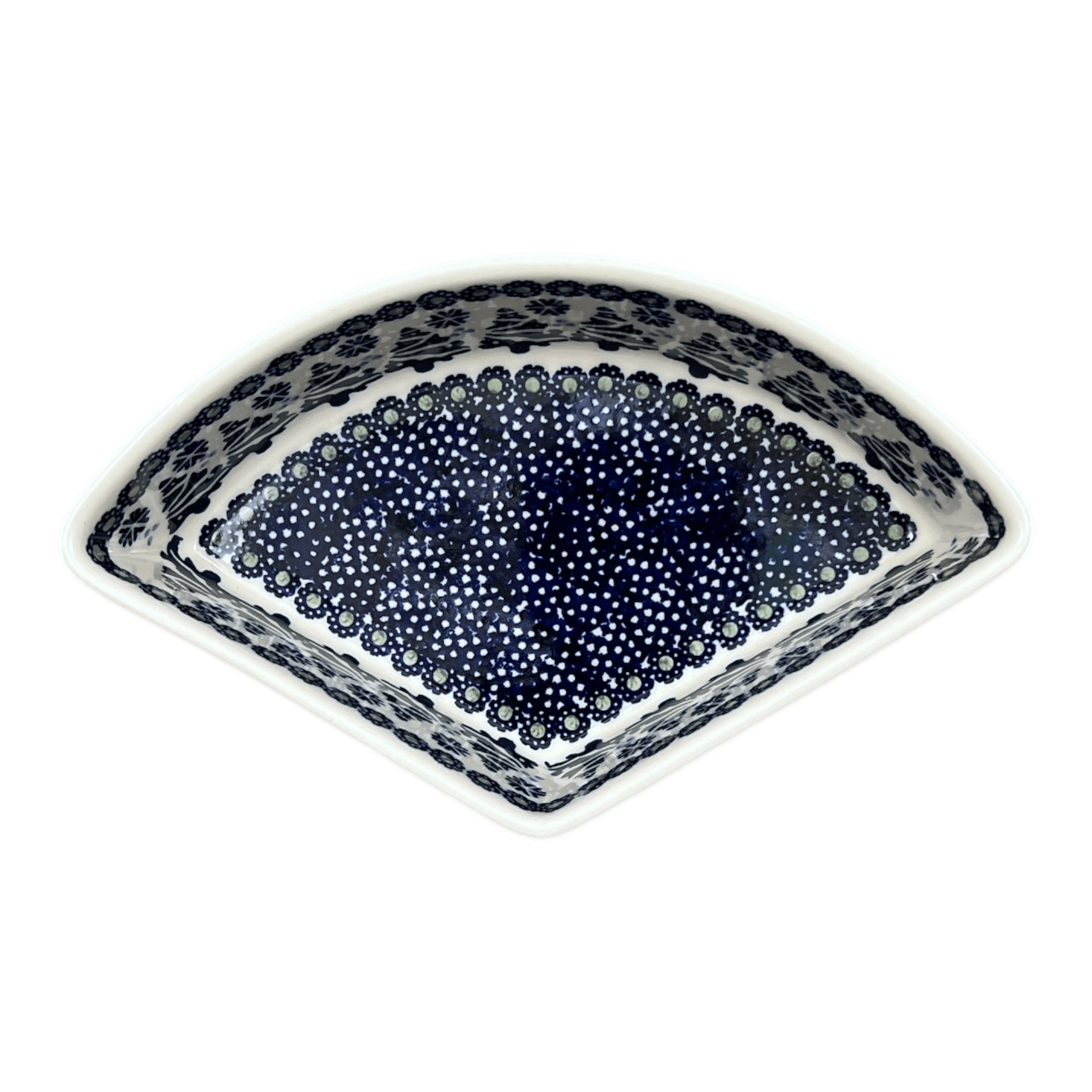 Introducing the exquisite Manufaktura Polish Pottery Bowl, a true masterpiece of form and function, wrapped in the enchanting "Snowy Pines" pattern. Crafted with care in Boleslawiec, Poland, this wedge-shaped wonder measures 5" x 8.5" and dives 2.25" deep into the realm of culinary possibilities. Whether you're dishing out vibrant side dishes, hosting a snazzy snack buffet, or doling out delightful dips and candies, this bowl is your go-to partner in dining and entertaining. Its clever design allows you to combine three bowls to form a full circle, perfect for a party spread, or align them in a creative culinary runway for toppings and more. Let your imagination soar with Polish pottery, where the only limit is your creativity!