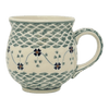 The "Woven Pansies" pattern is a true work of art. Picture delicate flowers in shades of green, white, and blue, dancing across a white background. A thin band of charming blue and orange flowers encircles the center, connected by a slender green vine. And let's not forget about those adorable little green leaves that sprout from the flowers. This pattern is a shining example of Traditional level of artistry, which is the most common and recognizable in the world of Polish pottery.