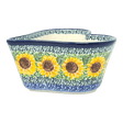 Imagine a piece of art that also serves your favorite desserts! Introducing the Polish Pottery Bowl, a charming heart-shaped treasure that is as delightful to use as it is to display. Crafted by the skilled artisans of Ceramika Artystyczna in the picturesque town of Boleslawiec, Poland, this 6-inch bowl is not just a dish but a doorway to a tradition of craftsmanship. The "Sunflowers" pattern adorning the bowl is a vibrant tapestry of colors, with predominantly blue hues and cheerful accents of yellow and green. It's like holding a piece of summer in your hands, perfect for brightening up your table with a splash of color and a dash of love.