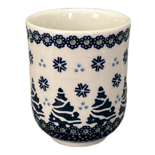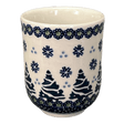 Not just a pretty face, the "Snowy Pines" design is a testament to the age-old "punching" technique of hand stamping employed by Polish potters. This method allows for a beautiful array of designs, inspired largely by nature, to be created. Although termed as ‘traditional’ due to its familiar patterns, each piece varies slightly, showcasing the unique touch of the artist behind it. This level of craftsmanship not only ensures that no two cups are exactly alike but also reflects a rich cultural heritage. Standing 3.25" tall with a diameter of 2.5", this cup is the perfect size for both functionality and aesthetic grace.