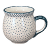 Start your day off right with a hot cup of coffee or tea in this beautiful Polish pottery belly mug! The "Misty Green" pattern is a sight to behold, with its intricate design elements incorporating dots in a predominantly white color with accents in green. This pattern features a white background adorned with tiny green dots, creating a mesmerizing visual feast for the eyes.