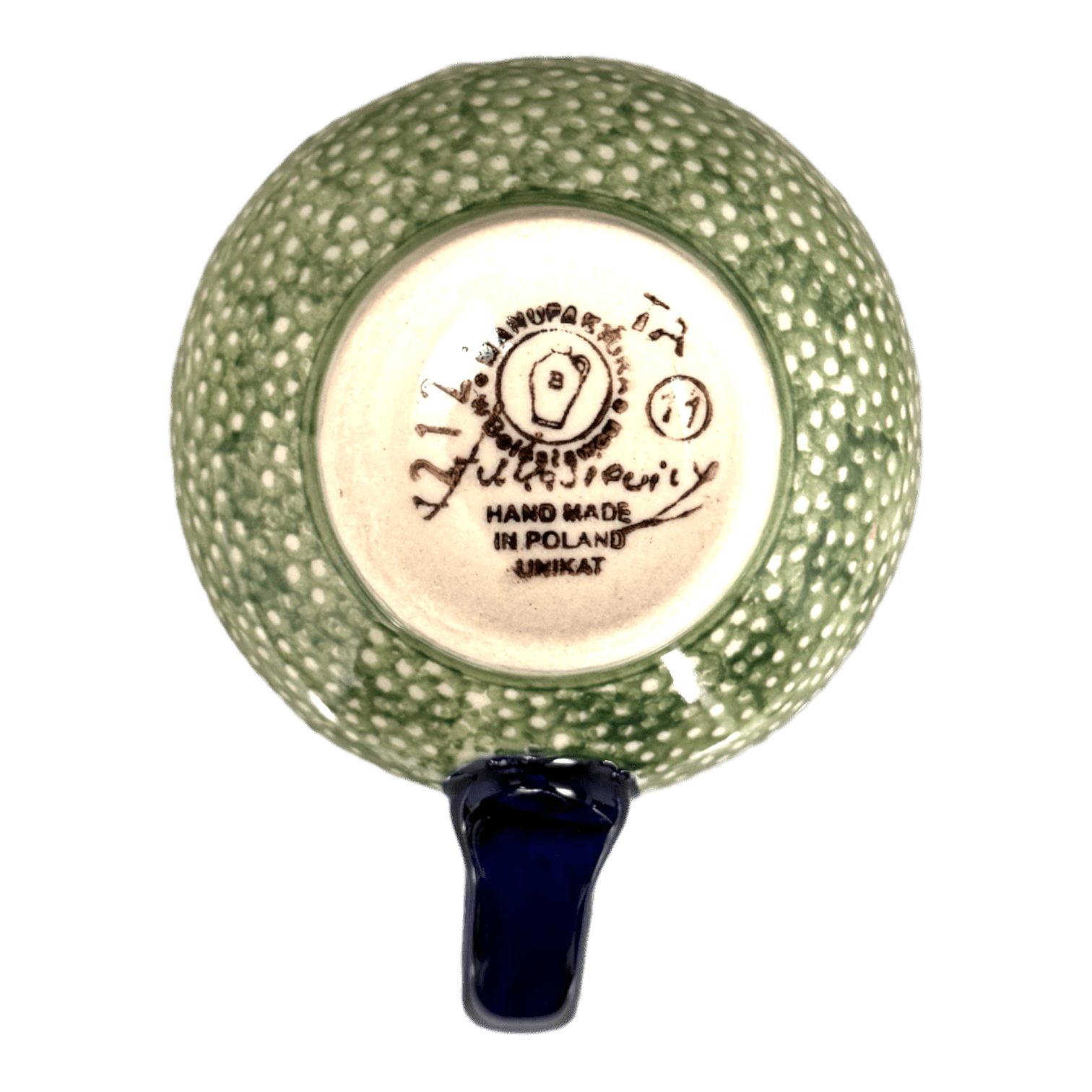 This Polish pottery isn't just for show; it's built to withstand the rigors of daily use. Safe for the dishwasher, microwave, and even the oven (up to 425 degrees), it's as functional as it is beautiful. Whether you're looking to jazz up your home coffee station or searching for that perfect, eye-catching piece for your dining table, this mug fits the bill. Plus, with its robust construction free of lead, nickel, and cadmium, you can rest assured that it's a safe, durable addition to your kitchen. So why settle for ordinary when you can start your day with a work of art? The Medium Belly Mug from Manufaktura is more than just pottery—it's a celebration of heritage, craftsmanship, and the simple joy of beautiful things.