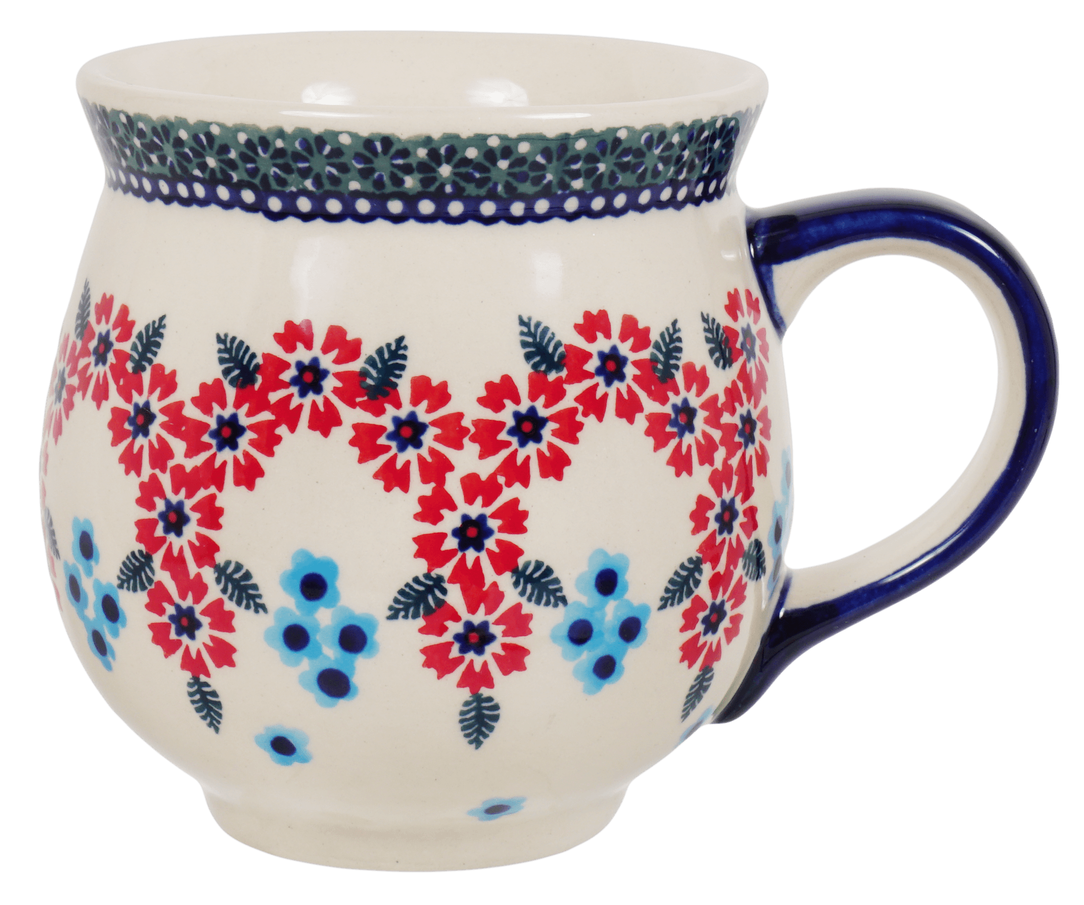 Mug, Belly Mug, 16 oz Large in "Floral Symmetry" by Manufaktura | K068T-DH18 is backordered and will ship as soon as it is back in stock.