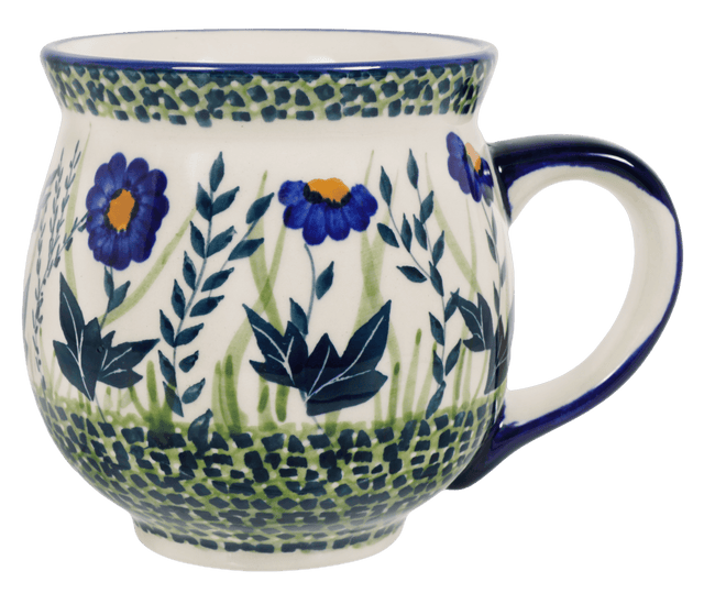 Are you tired of boring, plain mugs that just don't bring any excitement to your morning routine? Well, we have the perfect solution for you! Introducing the Polish Pottery 16 oz. Large Belly Mug by Manufaktura in the captivating "Bouncing Blue Blossoms" pattern (IM03).