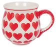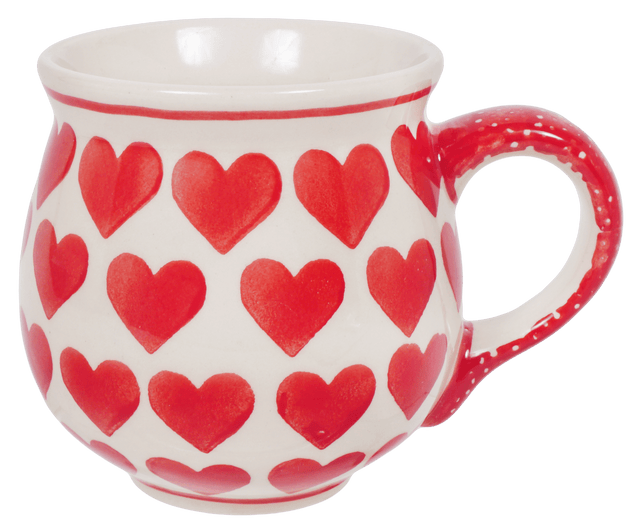 Imagine sipping your morning coffee from a masterpiece of craftsmanship - the Polish Pottery 10 oz. Medium Belly Mug. Not just any mug, this one is a canvas painted with the vibrant "Whole Hearted Red" pattern by the renowned Manufaktura in Boleslawiec, Poland. Each mug features a merry dance of red hearts set against a crisp white background, radiating warmth and love with every sip. It's not just a mug; it's your daily dose of art and inspiration, perfectly shaped to fit snugly in your hands and elevate your coffee experience.