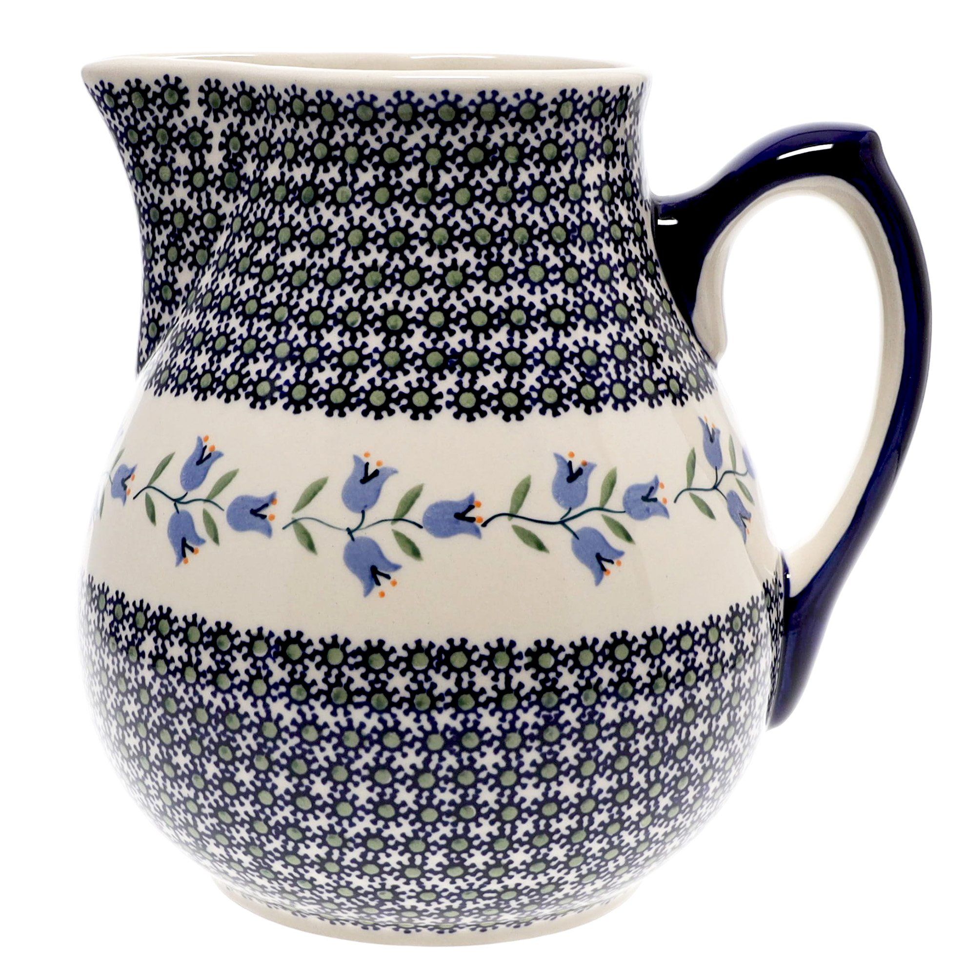 This Polish Pottery Pitcher isn't just about good looks; it's a celebration of traditional craftsmanship and artistic heritage. The "Lily of the Valley" pattern is meticulously hand-stamped using the time-honored "punching" technique, a testament to the skill and creativity of local artisans from Boleslawiec, Poland. These patterns, inspired largely by nature’s beauty, are considered traditional and are among the most recognized in Polish pottery. Every pitcher is slightly unique, a nod to the individual artistry and the slight variations that occur when multiple artists interpret the same traditional designs. Not only is this pitcher a functional kitchen essential, but it's also a piece of art that tells a story of cultural heritage and expert craftsmanship.