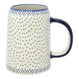 Introducing the exquisite Polish Pottery Drinking Glass from Manufaktura, a masterpiece crafted to elevate your drinking experience. This 22 oz tankard, adorned with the enchanting "Misty Blue" pattern, promises not just a beverage but a sip of artistry. Picture this: tiny, playful blue dots dancing on a pristine white background, each dot meticulously placed by the skilled hands of artisans from Boleslawiec, Poland. This isn't just any drinking glass; it's a piece of history, hand-painted and shaped in a town famed for its pottery. Store it in your freezer and voila! You have the perfect frosty companion to keep your drinks cold, making every gulp a refreshing escape.