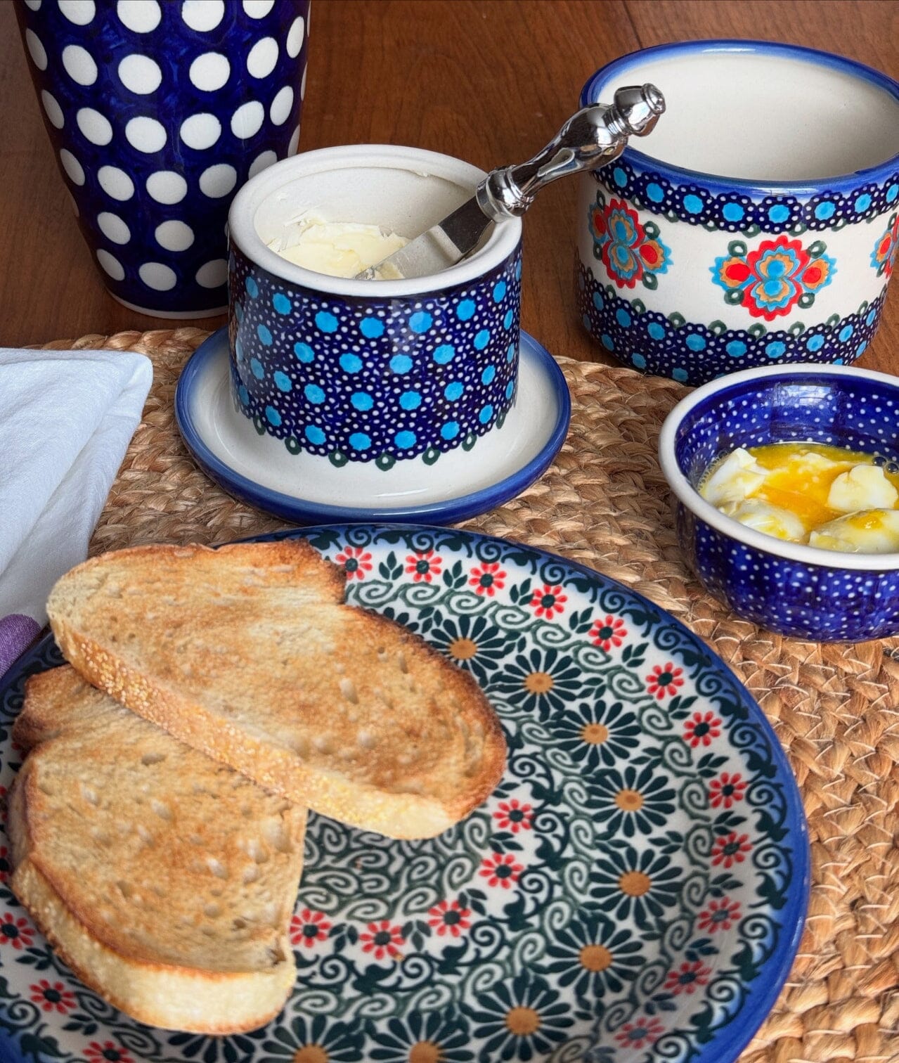 The "Garden Breeze" pattern is a masterpiece of the traditional Polish pottery technique known as "punching" or hand stamping. Each design element is carefully created by highly skilled artists, inspired by the natural beauty surrounding them. Despite being categorized as a "simpler" pattern within the traditional artistry level, the "Garden Breeze" offers a rich tapestry of design that is both familiar and uniquely varied, thanks to the diverse interpretations by different artists. This means no two plates are exactly alike—each one is a distinct piece of art that adds a special touch to your home décor.