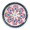 The "Floral Symmetry" pattern showcases a stunning combination of vibrant red flowers, delicately accented with hints of light blue and green, all set against a backdrop of crisp white. The design elements are carefully hand-painted by skilled artisans in Boleslawiec, Poland, ensuring each plate is a unique work of art.
