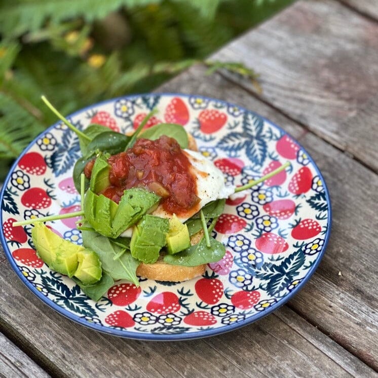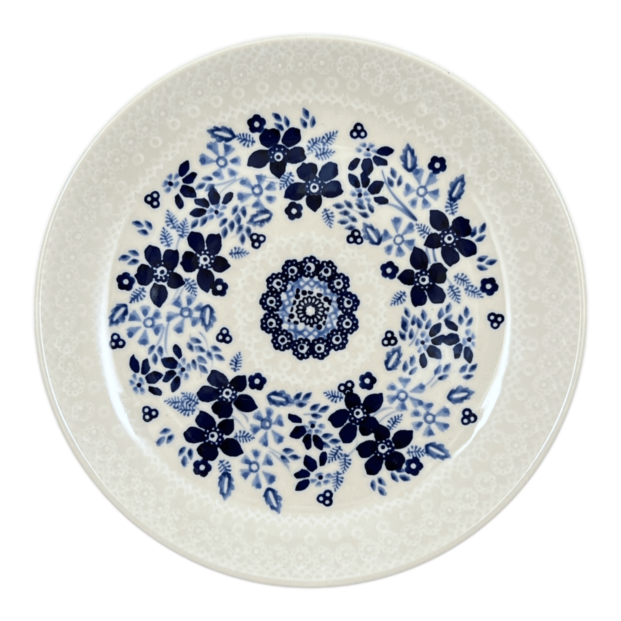 Introducing the Polish Pottery 8.5" Round Salad Plate by Manufaktura in the mesmerizing "Duet in Blue & White" pattern (SB04). This plate is not just for salads, it's a versatile piece that will bring a touch of elegance to your sandwiches, cookies, or desserts. Trust us, everything loves to be served on Polish Pottery!