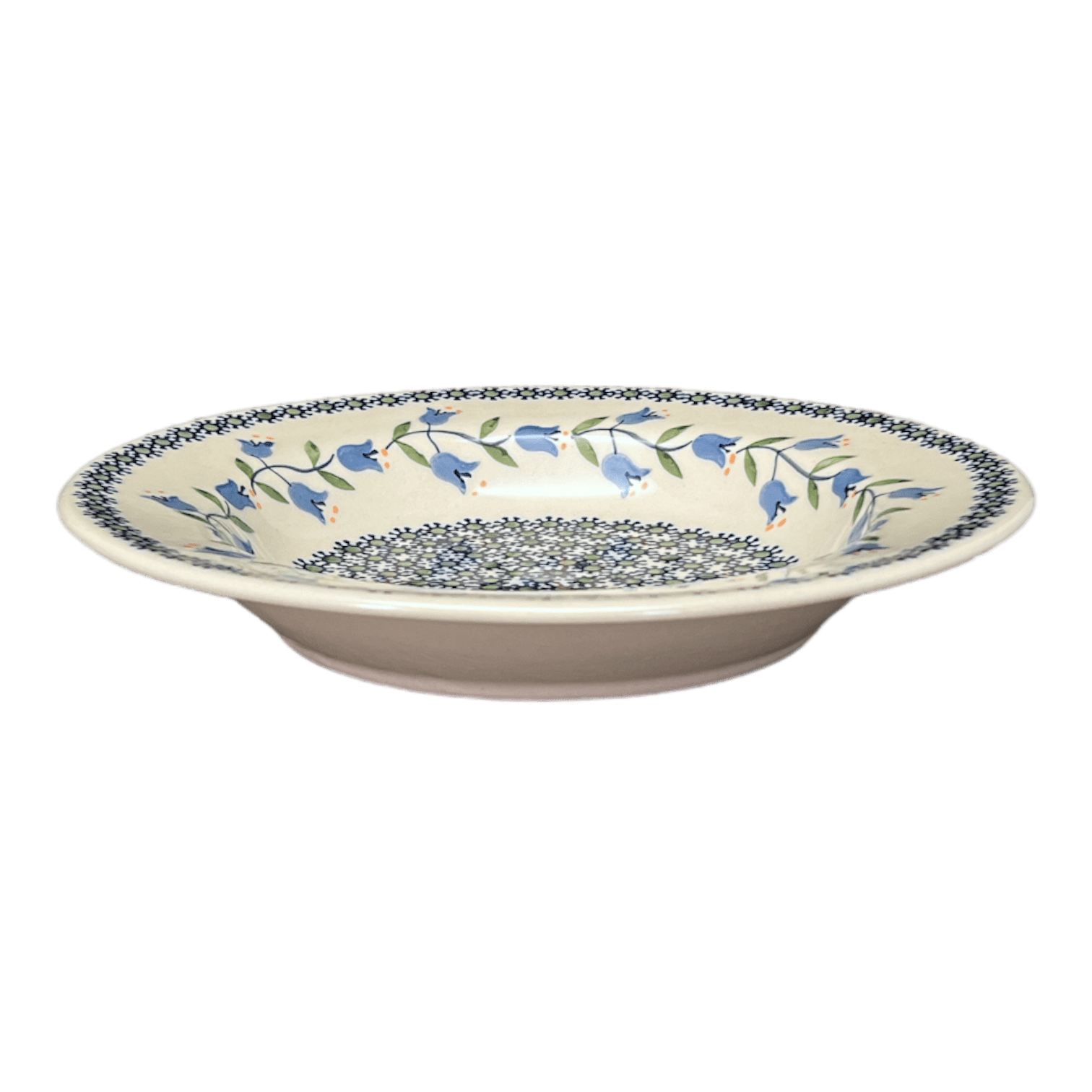 Imagine a table setting that not only serves your favorite dishes but also tells a story of artistry and tradition. Enter the Polish Pottery Soup Plate by Manufaktura, a stunning piece that combines functionality with a splash of vibrant colors and intricate designs. This 9.25" round soup plate, lovingly handcrafted in Boleslawiec, Poland, features the enchanting "Lily of the Valley" pattern. The design showcases a beautiful dance of blue and green blossoms resting on a crisp white background, with delicate blue bellflowers twining around a green vine—a scene reminiscent of a serene European garden brought to life on your dining table.