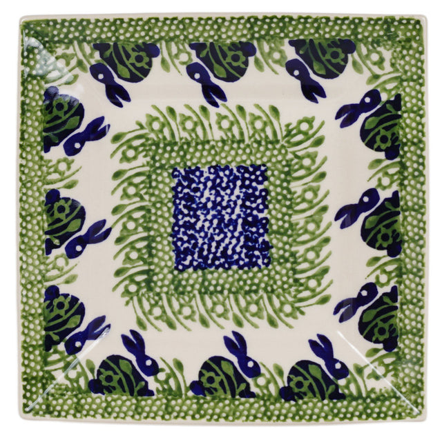 Introducing the fabulous Polish Pottery 7" Square Dessert Plates by Manufaktura in the delightful "Bunny Love" pattern (P324). These plates are not just your ordinary dessert plates - they are a work of art! Perfect for any occasion, these square plates are not only practical but also add a touch of elegance to your table setting.
